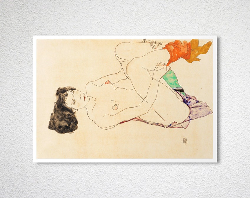 Reclining Woman with Shoes and Stockings by Egon Schiele Fine Art Print - Poster Paper or Canvas Print / Gift Idea