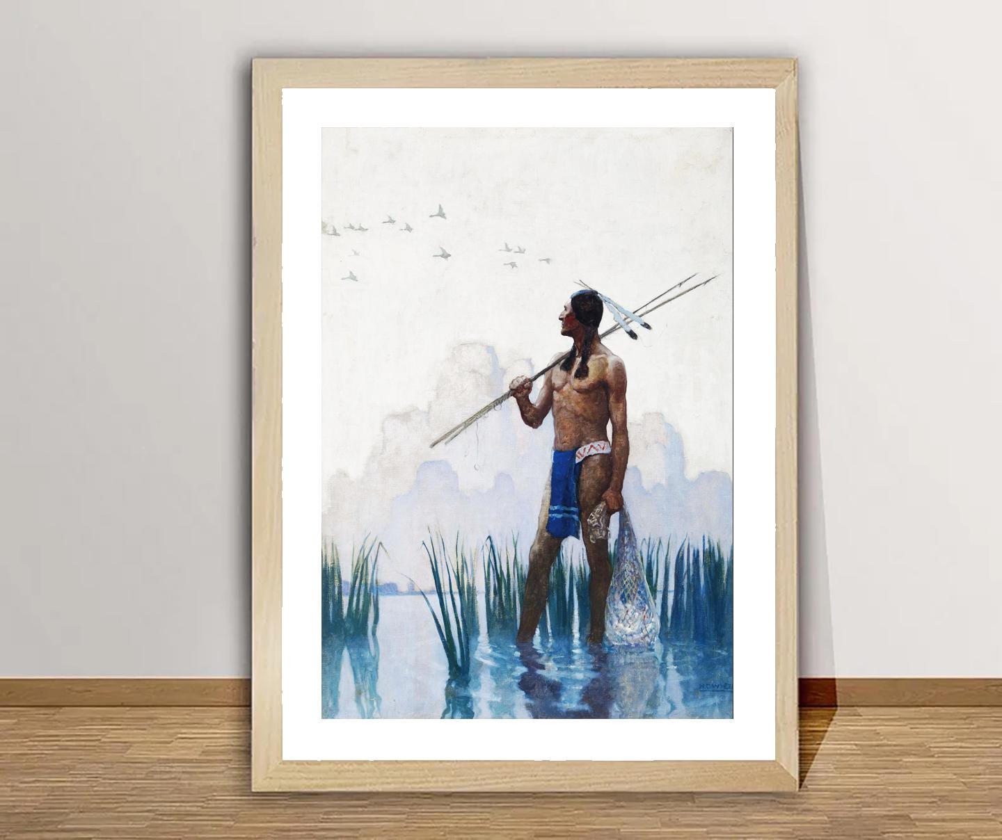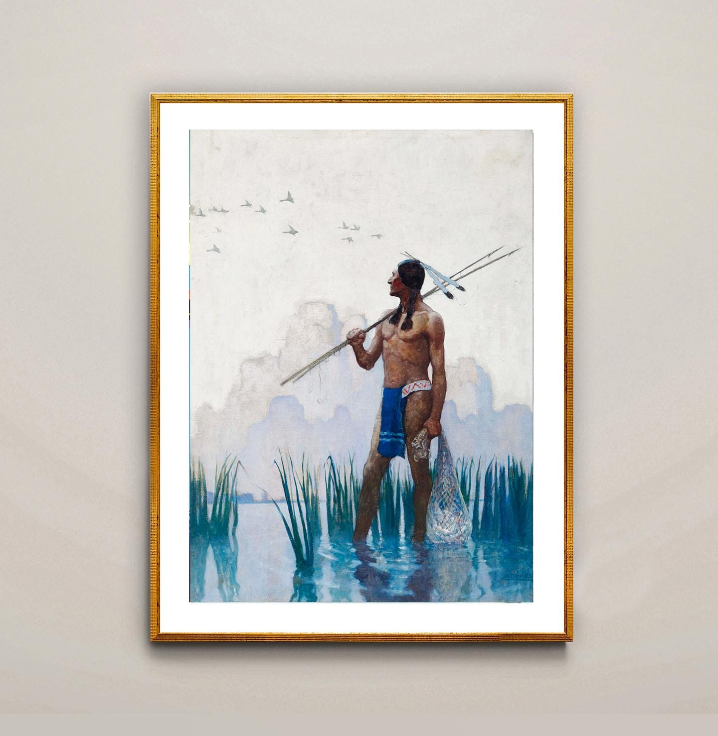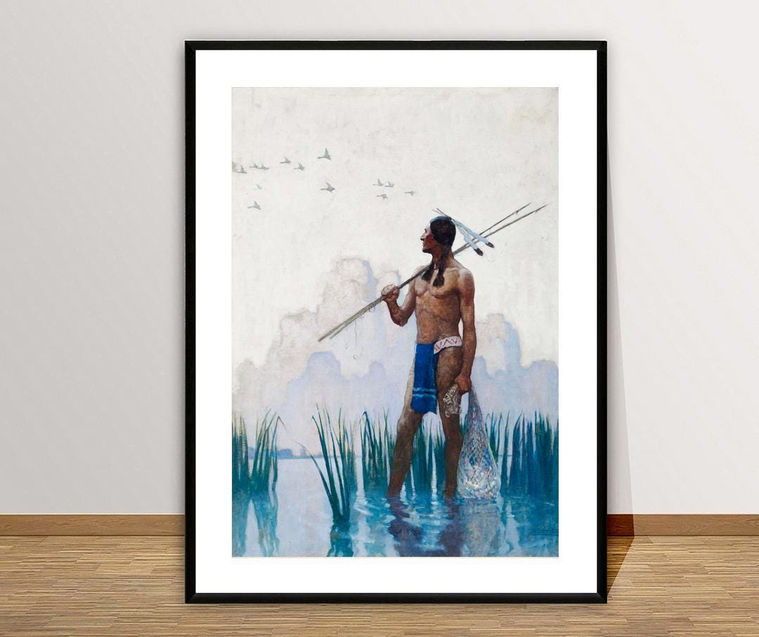 Indian Brave Fishing by Newell Convers Wyeth Fine Art Print - Poster Paper or Canvas Print / Gift Idea