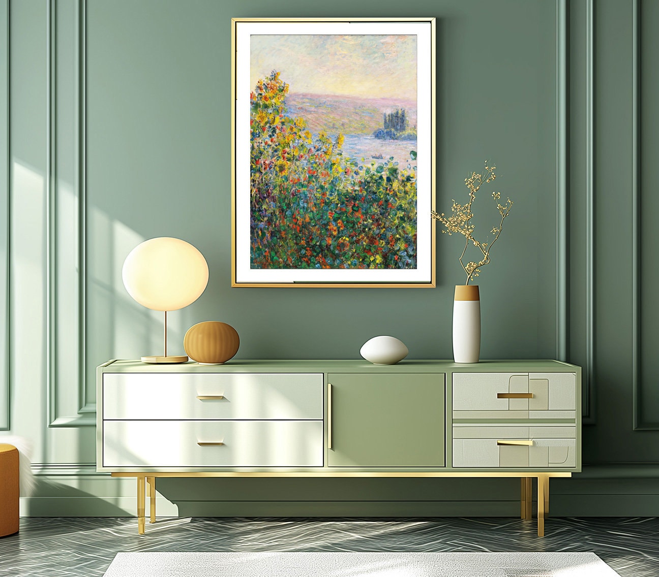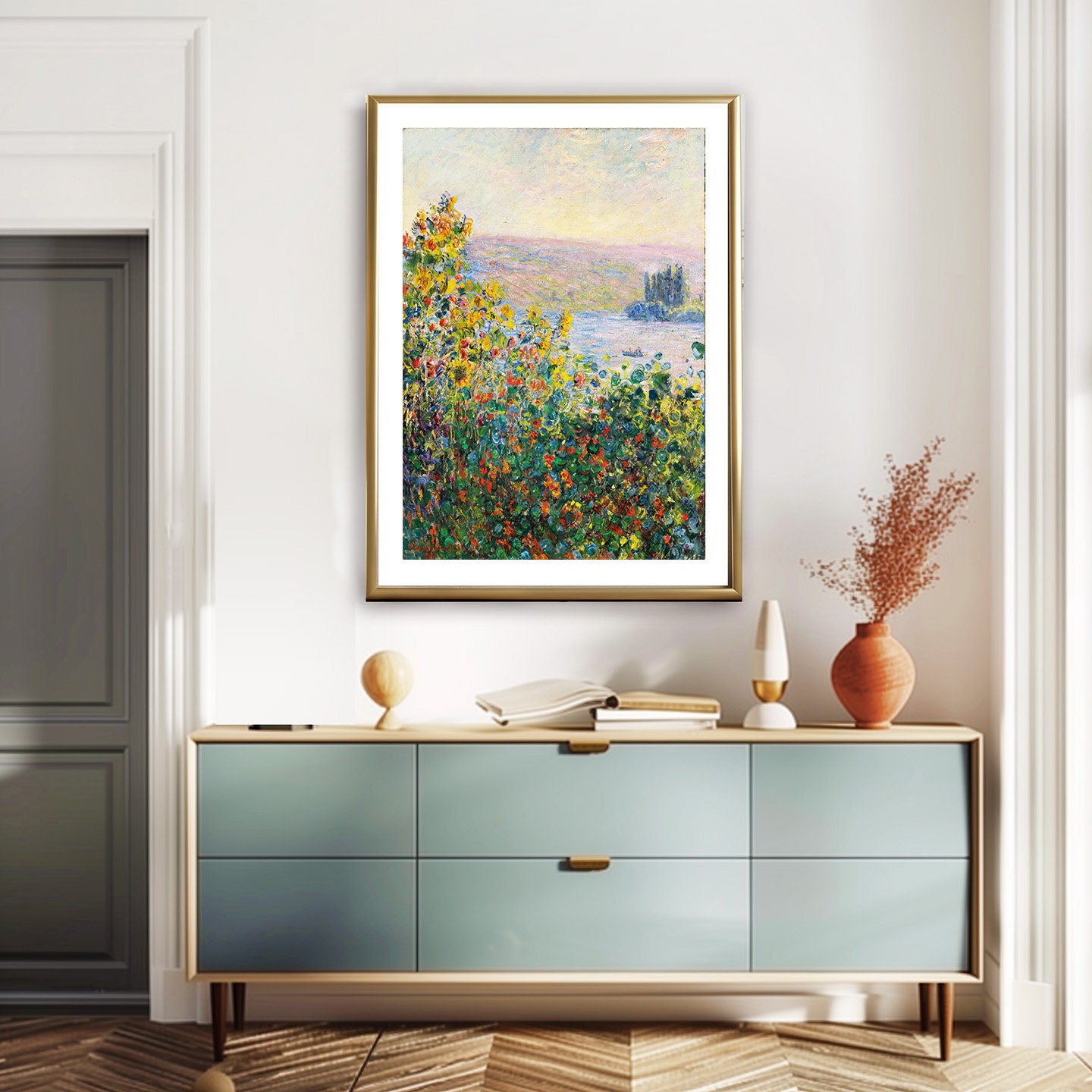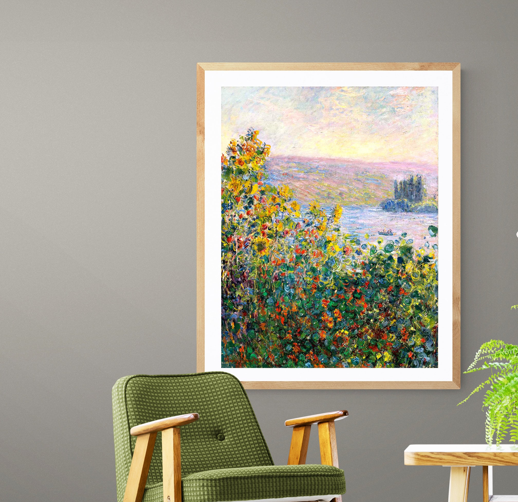 Monet Flower Beds at Vétheuil Print: Impressionist Landscape Art