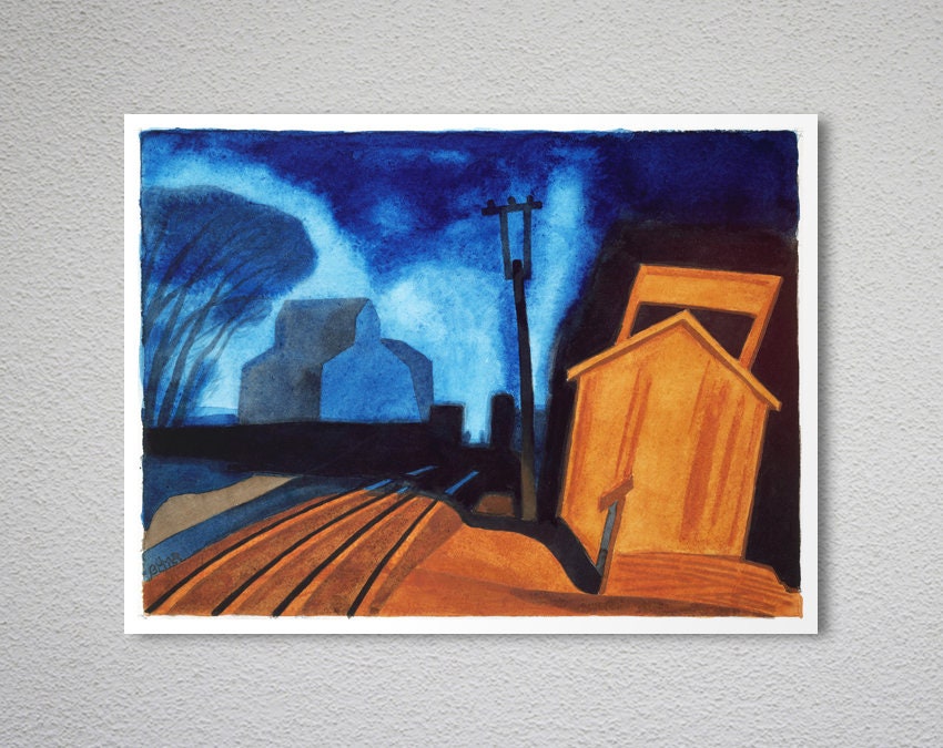 Flag Station, Elizabeth, New Jersey by Oscar Bluemner Fine Art Print - Poster Paper or Canvas Print / Gift Idea