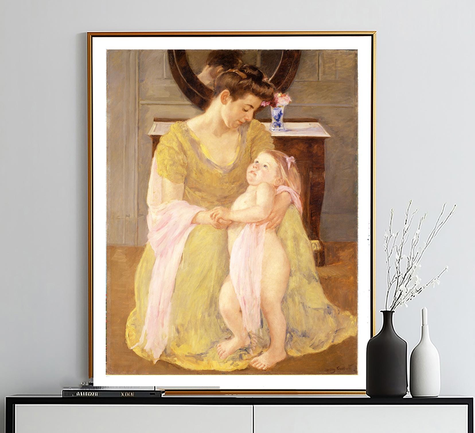 Mother and Child with a Rose Scarf by Mary Cassatt Fine Art Print - Poster Paper or Canvas Print
