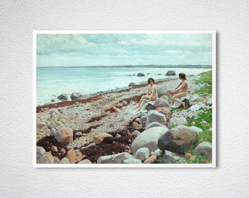 Paul Fischer's Bathers on the Beach: Danish Coastal Art Print