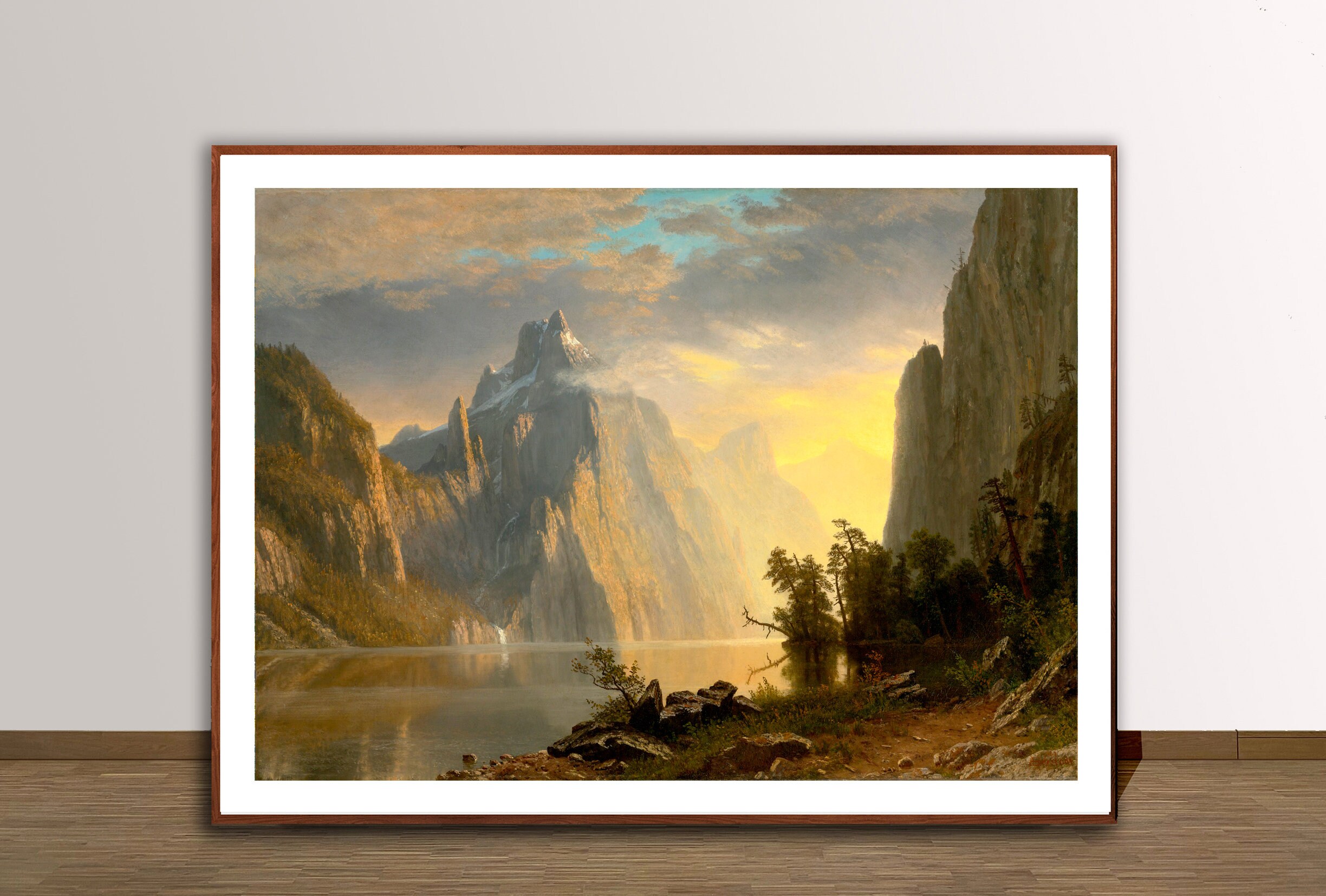 GICLEE printed on high quality paper, cotton canvas or adhesive sticker paper. A high quality reproduction of painting by Albert Bierstadt. Professional packaging for safe shipping. Natural white border will be added to the image for mounting and framing.