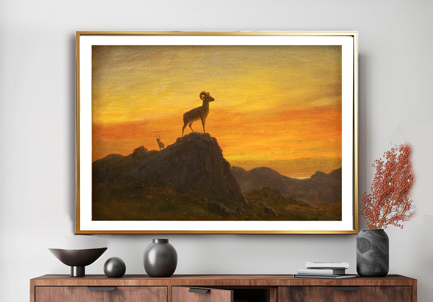 Albert Bierstadt Rocky Mountain Sheep Art Print: Landscape Wall Decor