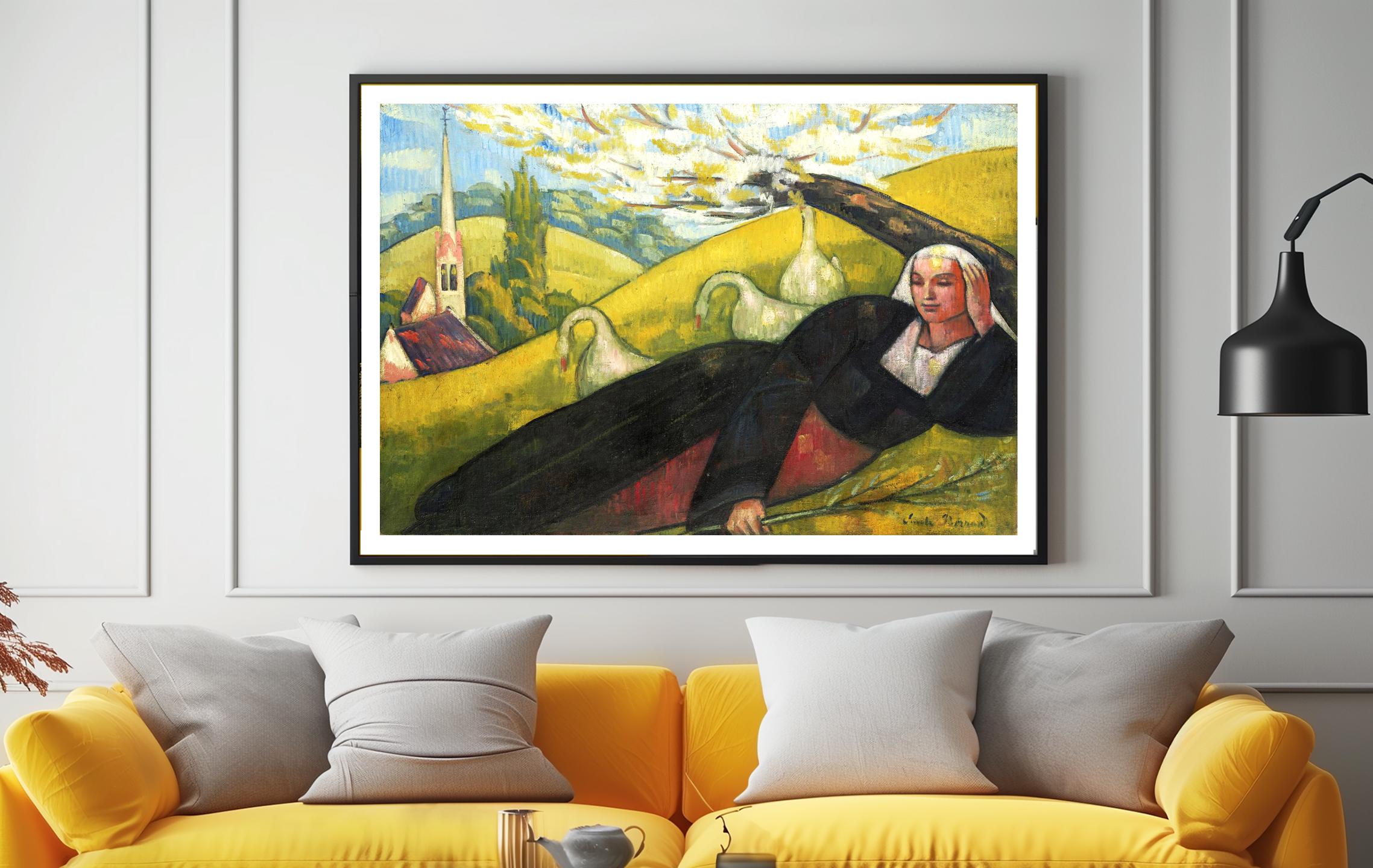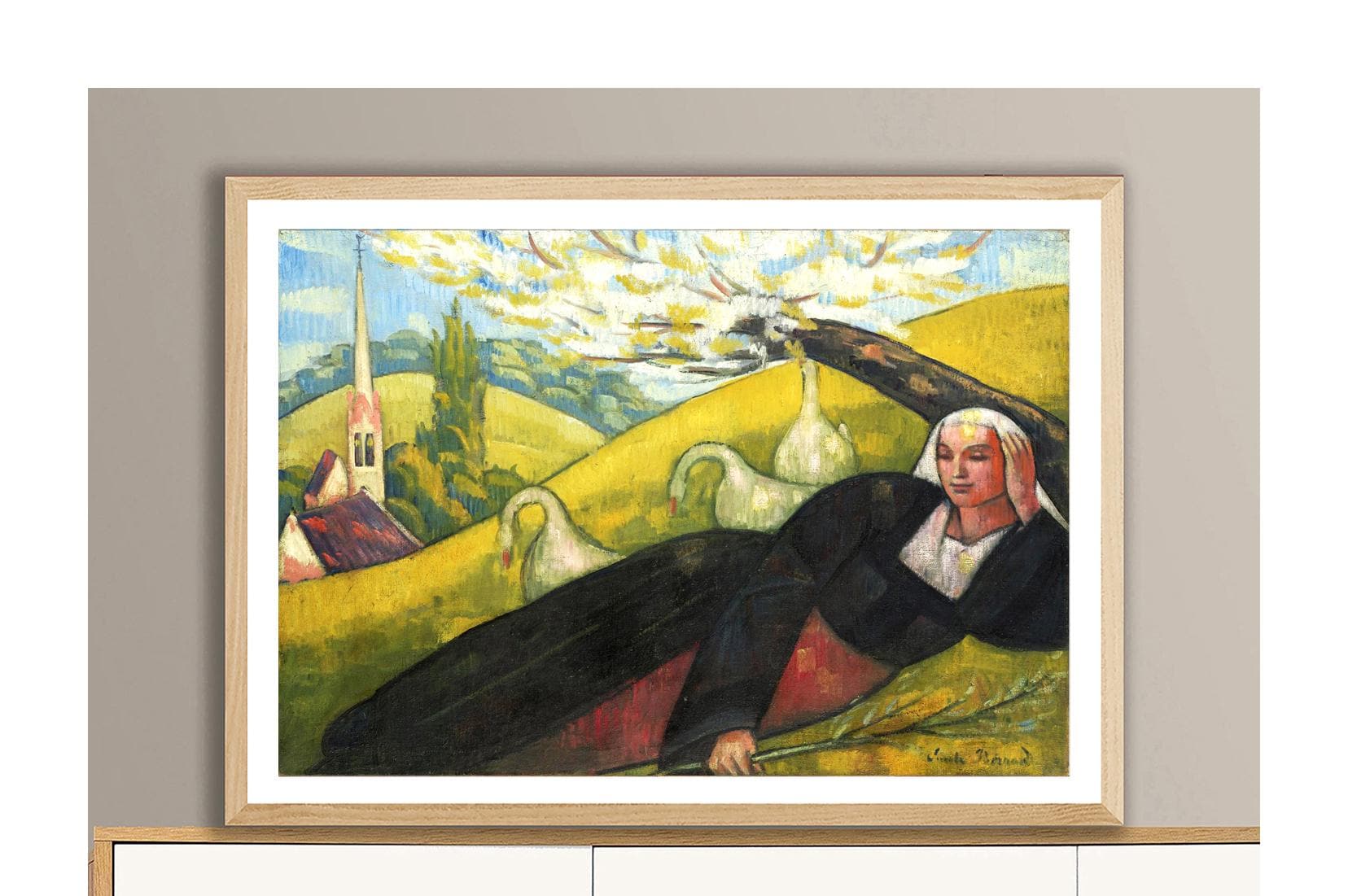 Le Repos a Pont-Aven (La Gardeuse d' Oise) by Emile Bernard Fine Art Print - Poster Paper or Canvas Print