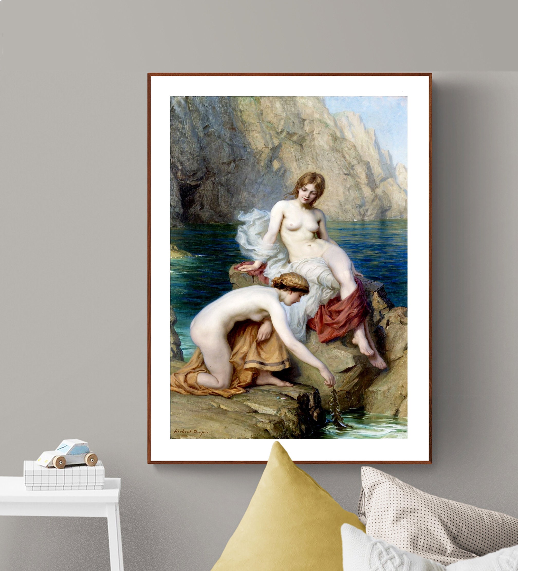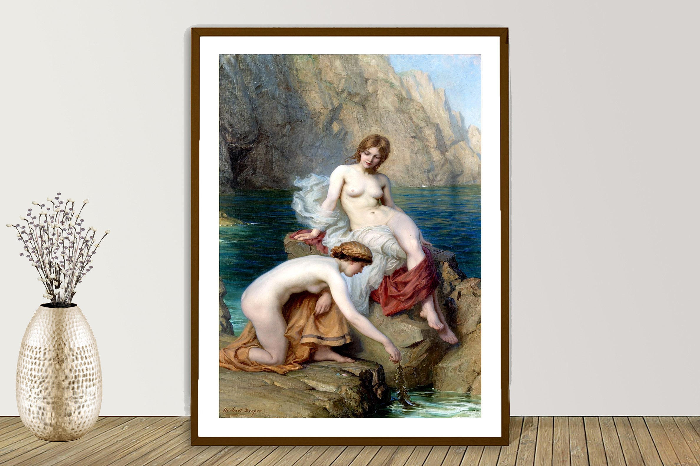 By Summer Seas by Herbert James Draper, Fine Art Print, Classicist Painting, Nude Woman Poster, Coastal Wall Art, Nautical Wall Décor