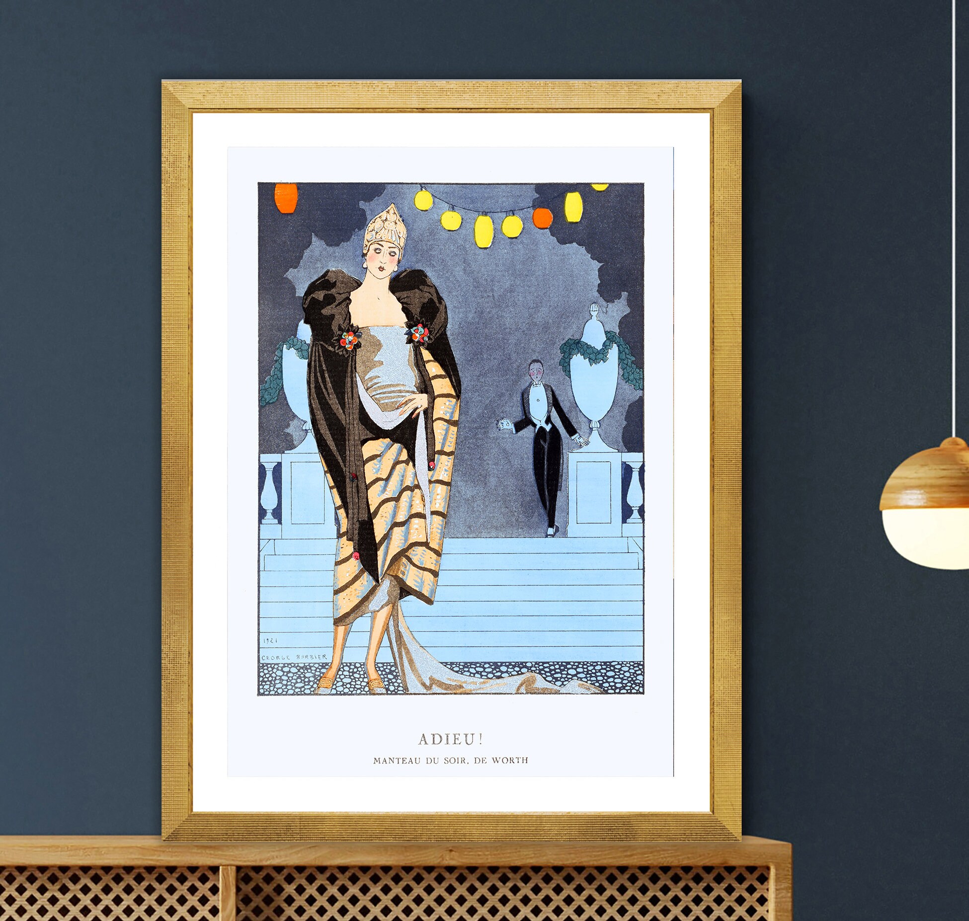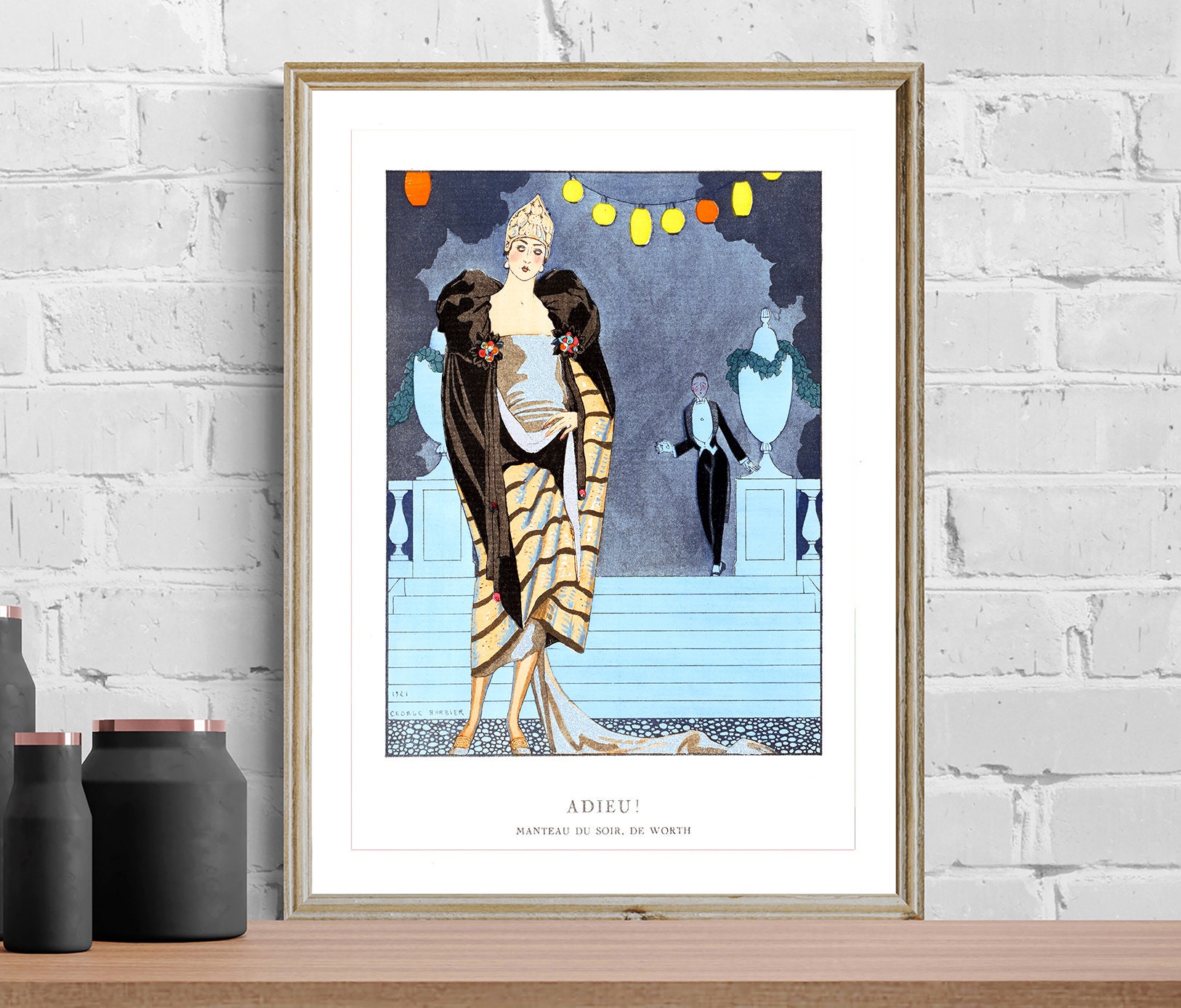 Adieu, Manteau du Soir, de Worth by George Barbier Vintage Poster - Poster Paper or Canvas Print / Gift Idea
