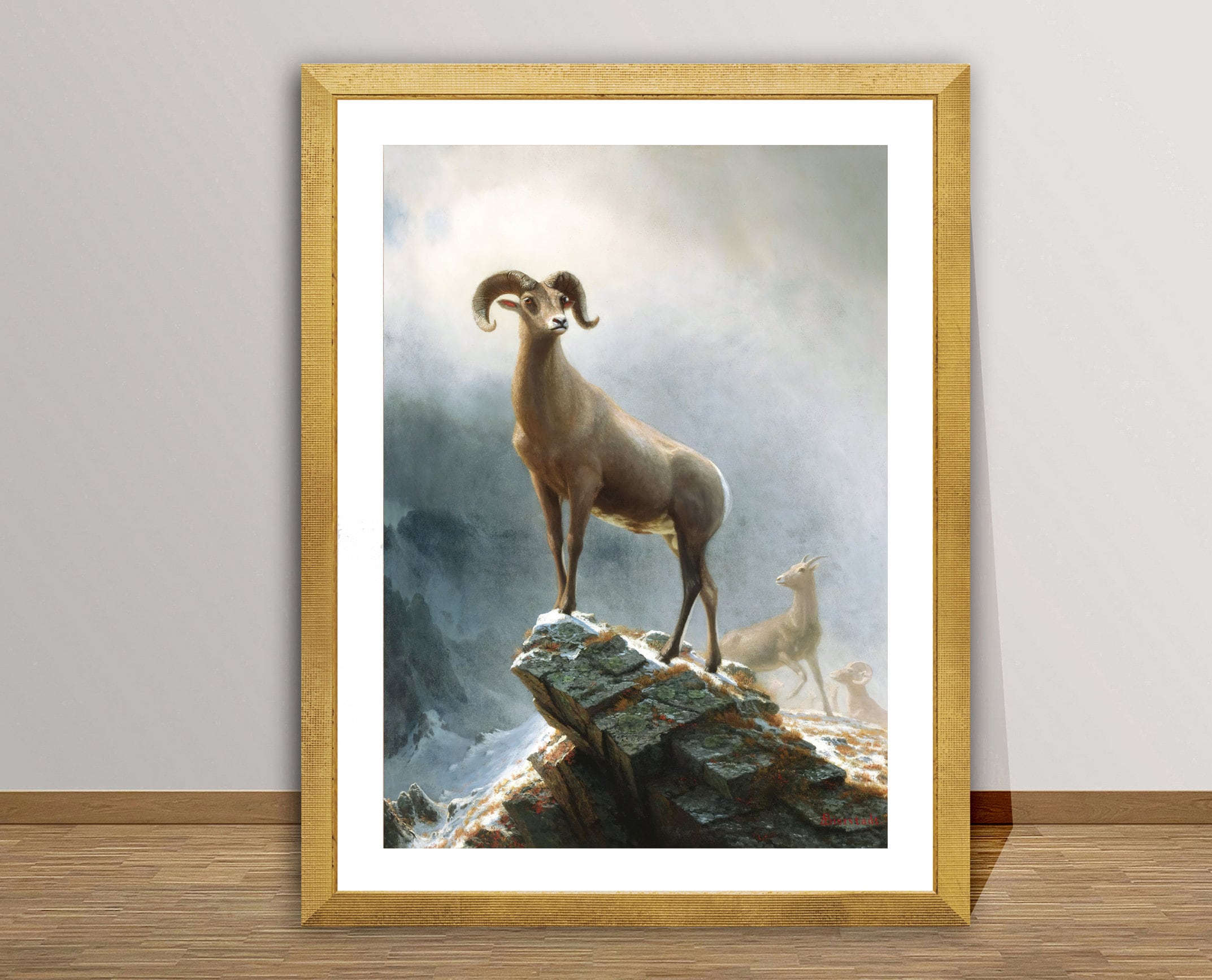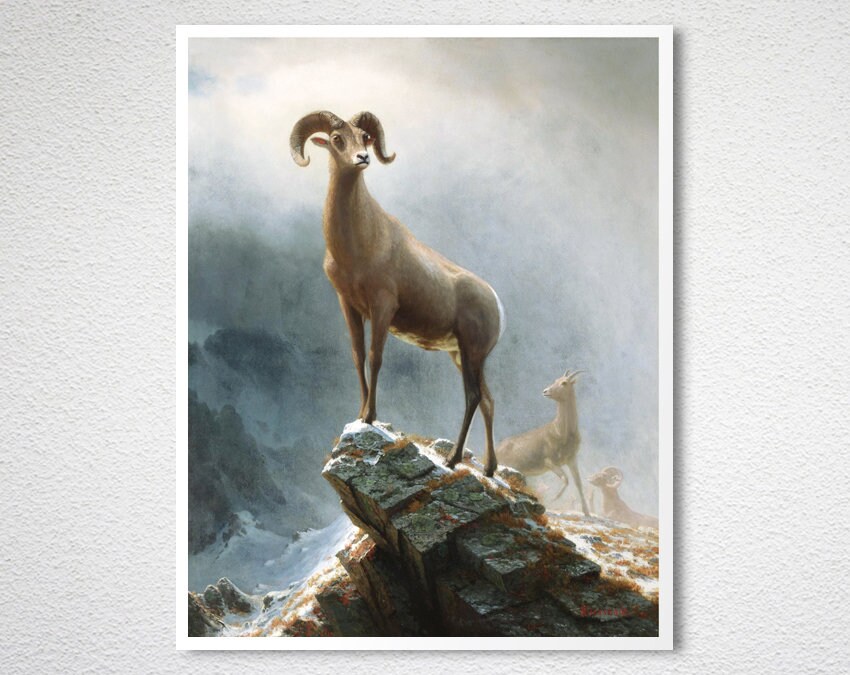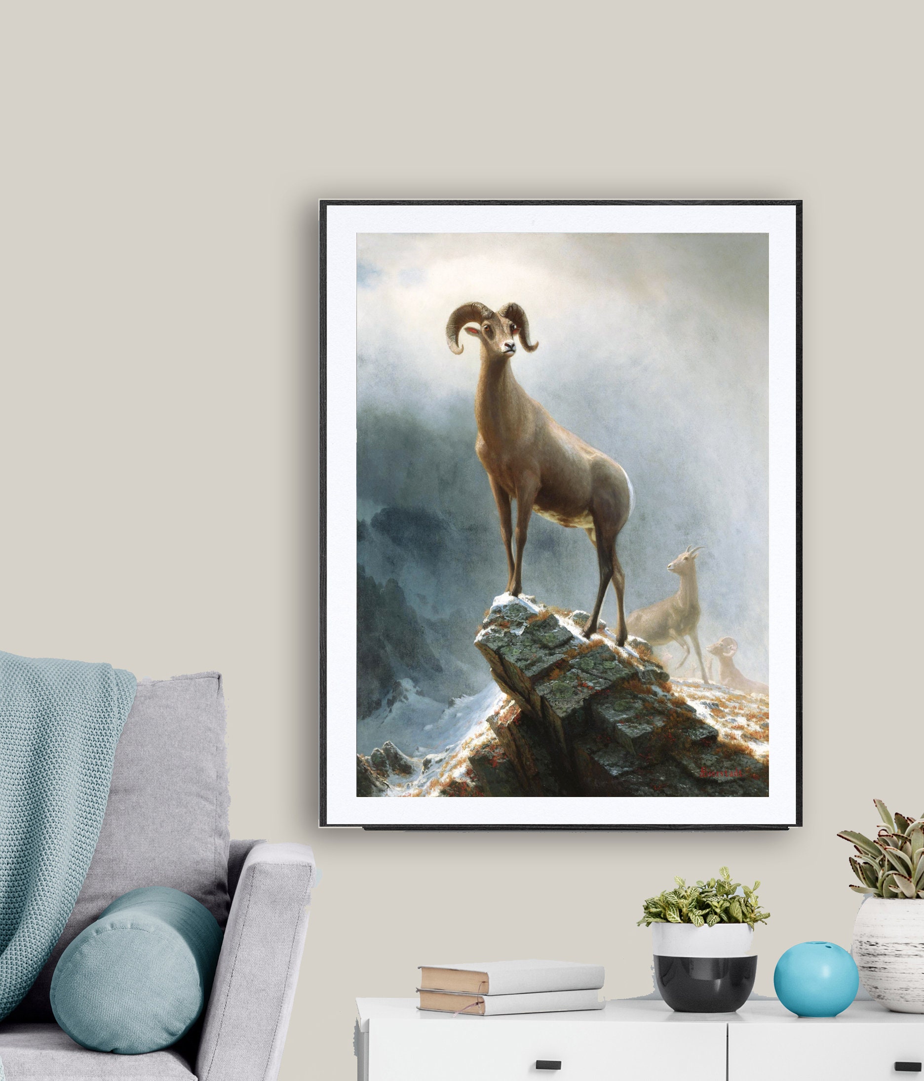 Rocky Mountain, Big Horn Sheep by Albert Bierstadt Fine Art Print - Poster Paper or Canvas Print / Gift Idea / Wall Decor