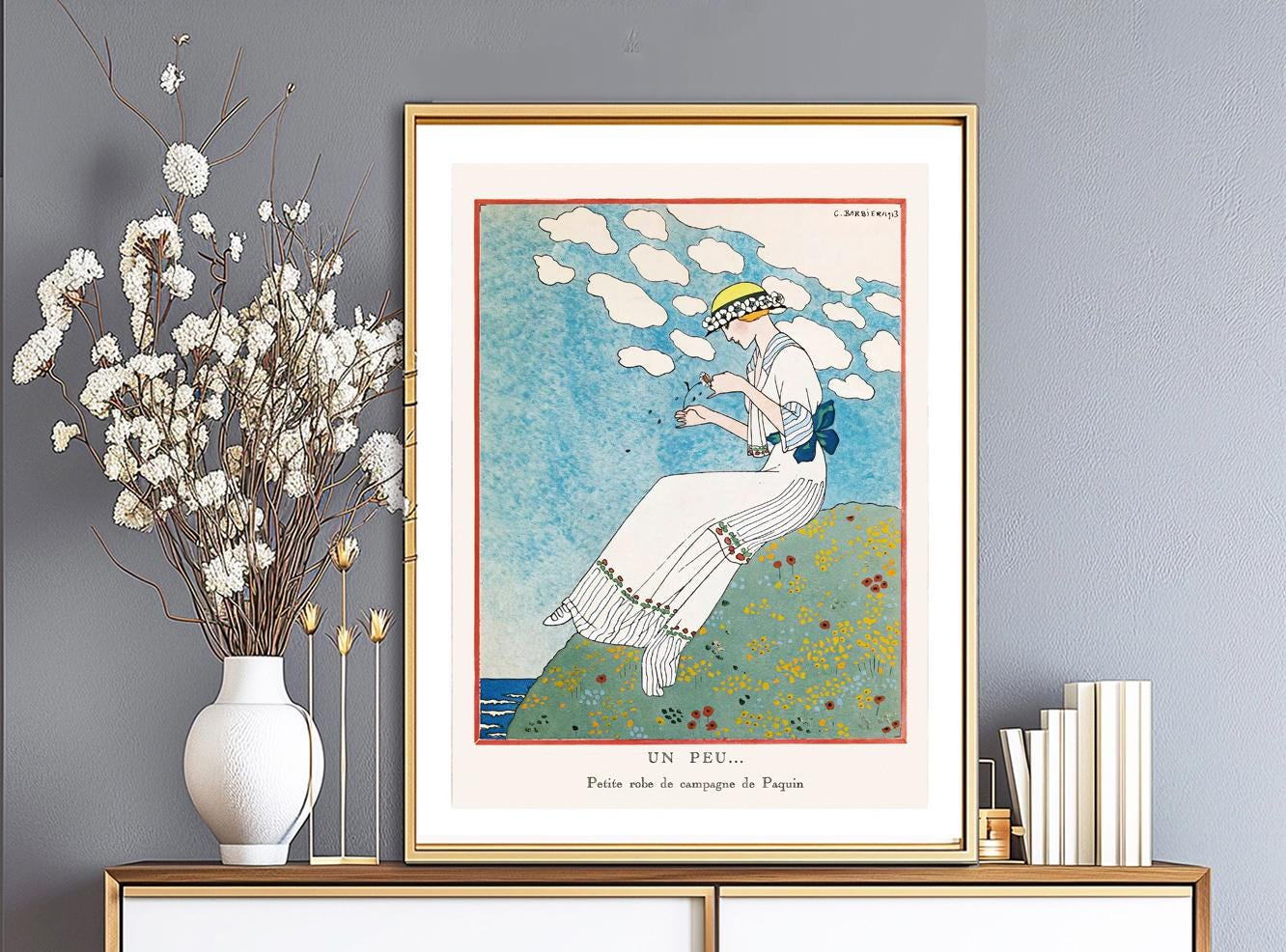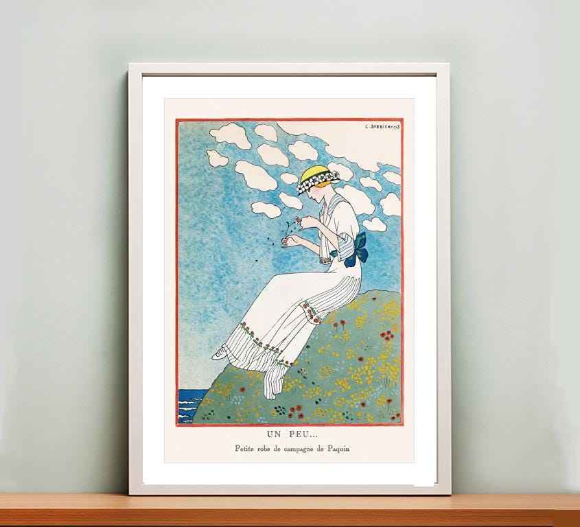 Un Peu, Petite Robe de Campagne de Paquin (Little Paquin Country Dress) George Barbier Vintage Poster - Poster Paper or Canvas Print / Gift Idea