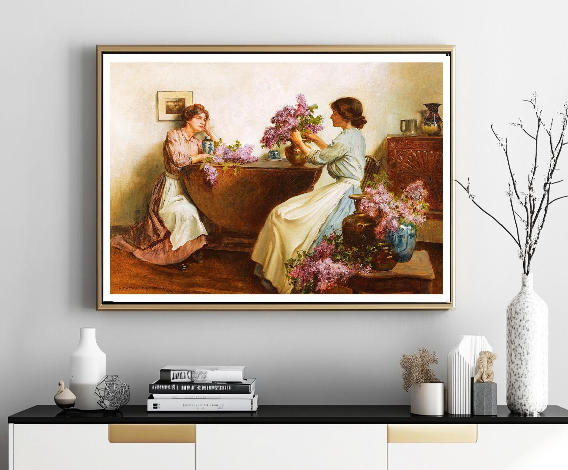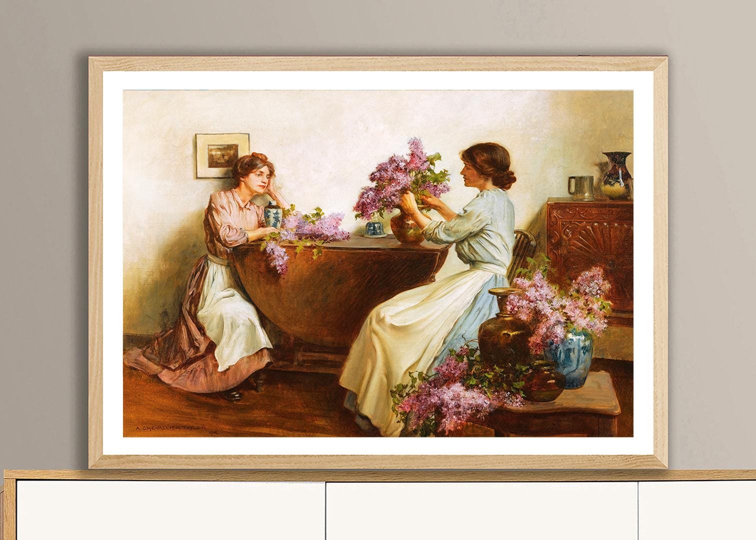 Women Arranging Flowers by Albert Chevallier Taylor Fine Art Print - Poster Paper or Canvas Print / Gift Idea