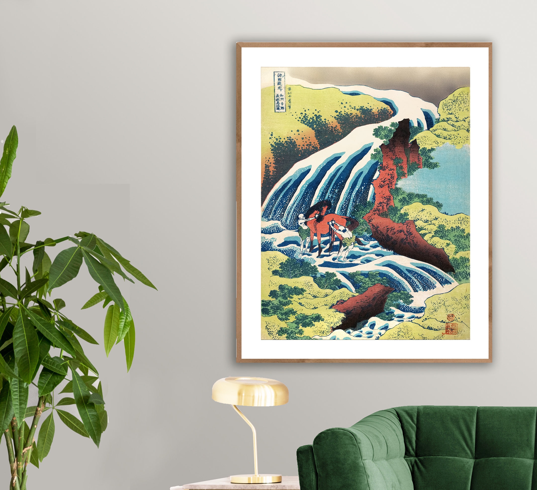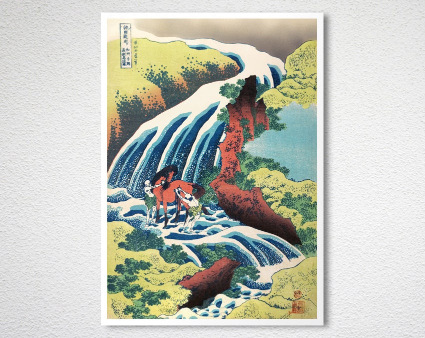 The Waterfall Where Yoshitsune Washed His Horse by Katsushika Hokusai Fine Art Print - Poster Paper or Canvas Print / Gift Idea