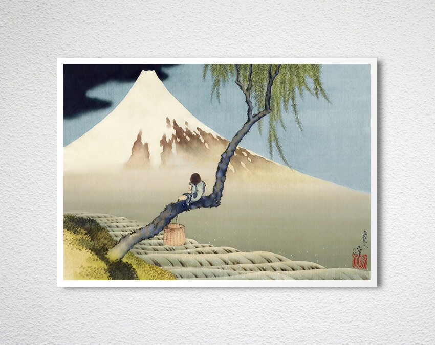 Boy Viewing Mount Fuji by Katsushika Hokusai, Fine Art Print, Asian Wall Décor, Japanese Artwork, Ukiyo-e Poster, Mount Fuji Painting
