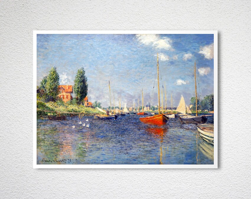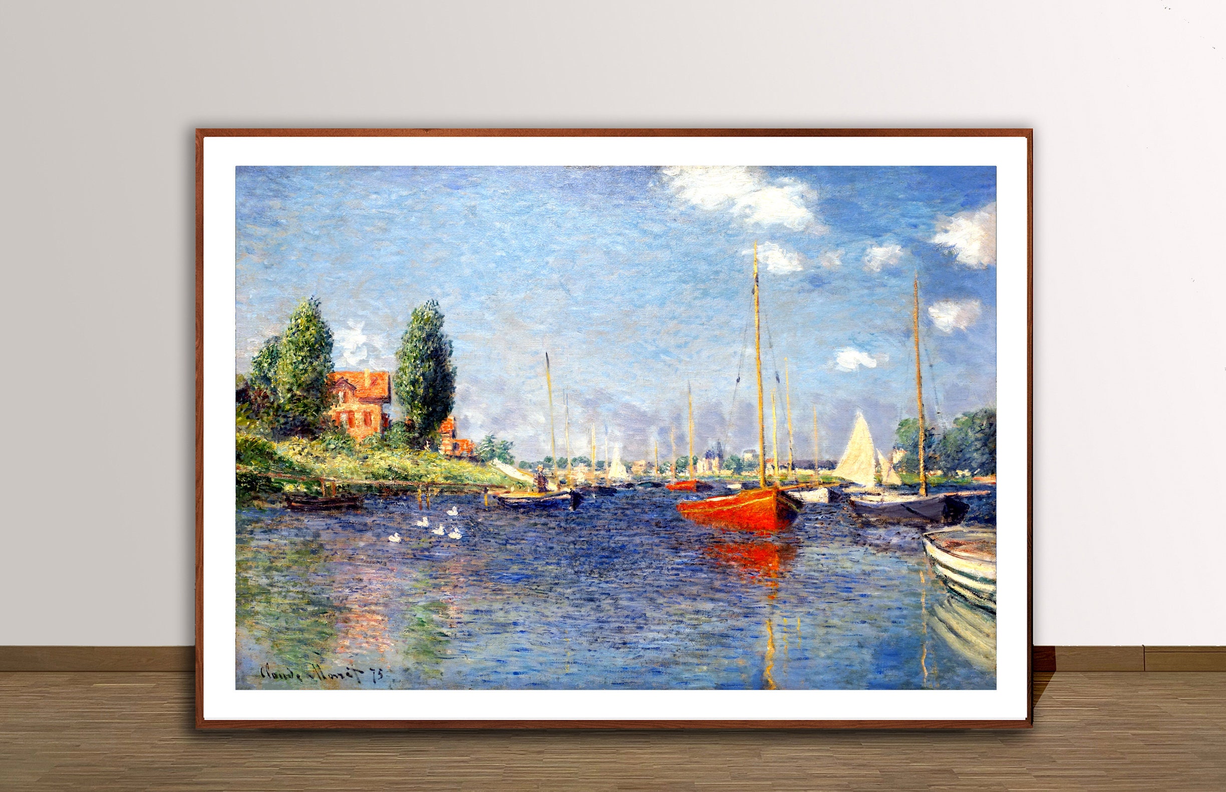 Red Boats in Argenteuil by Claude Monet Fine Art Print - Poster Paper or Canvas Print