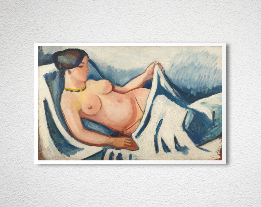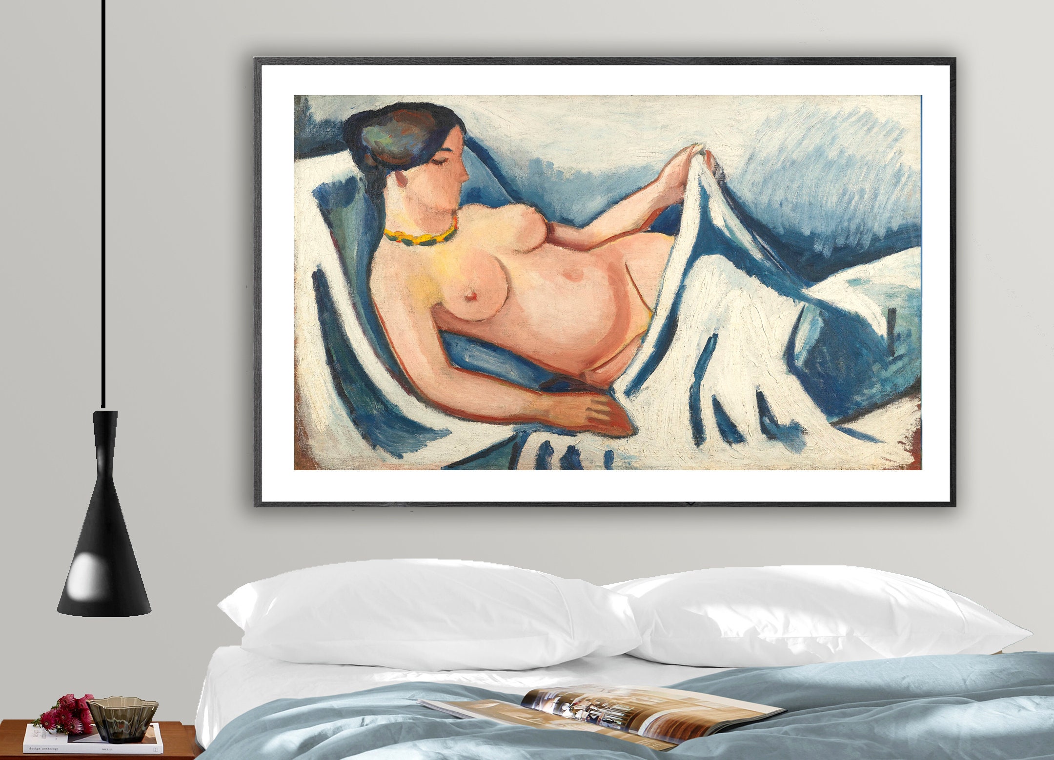 Reclining Nude (Akt Liegend) by Auguste Macke Fine Art Print - Poster Paper or Canvas Print / Gift Idea / Wall Decor