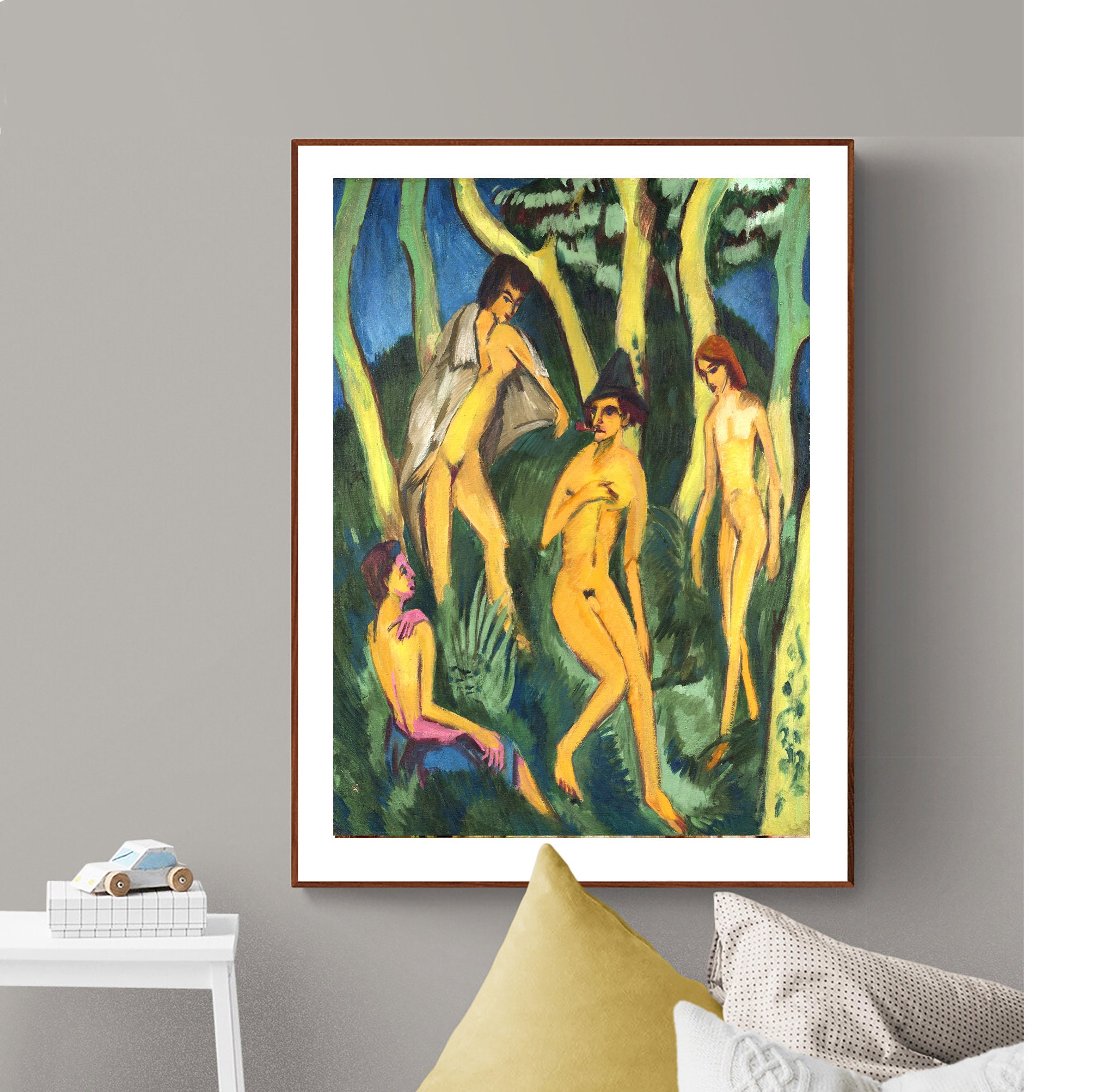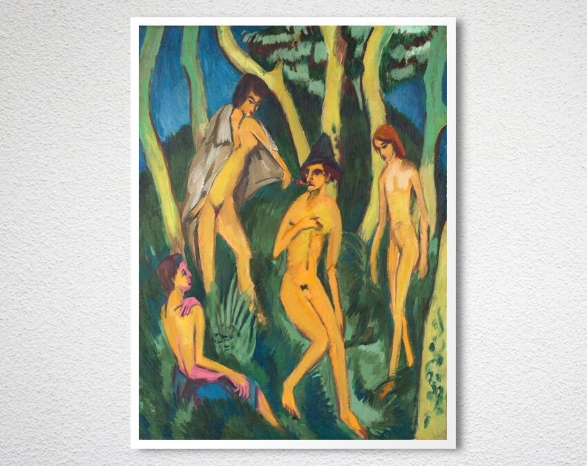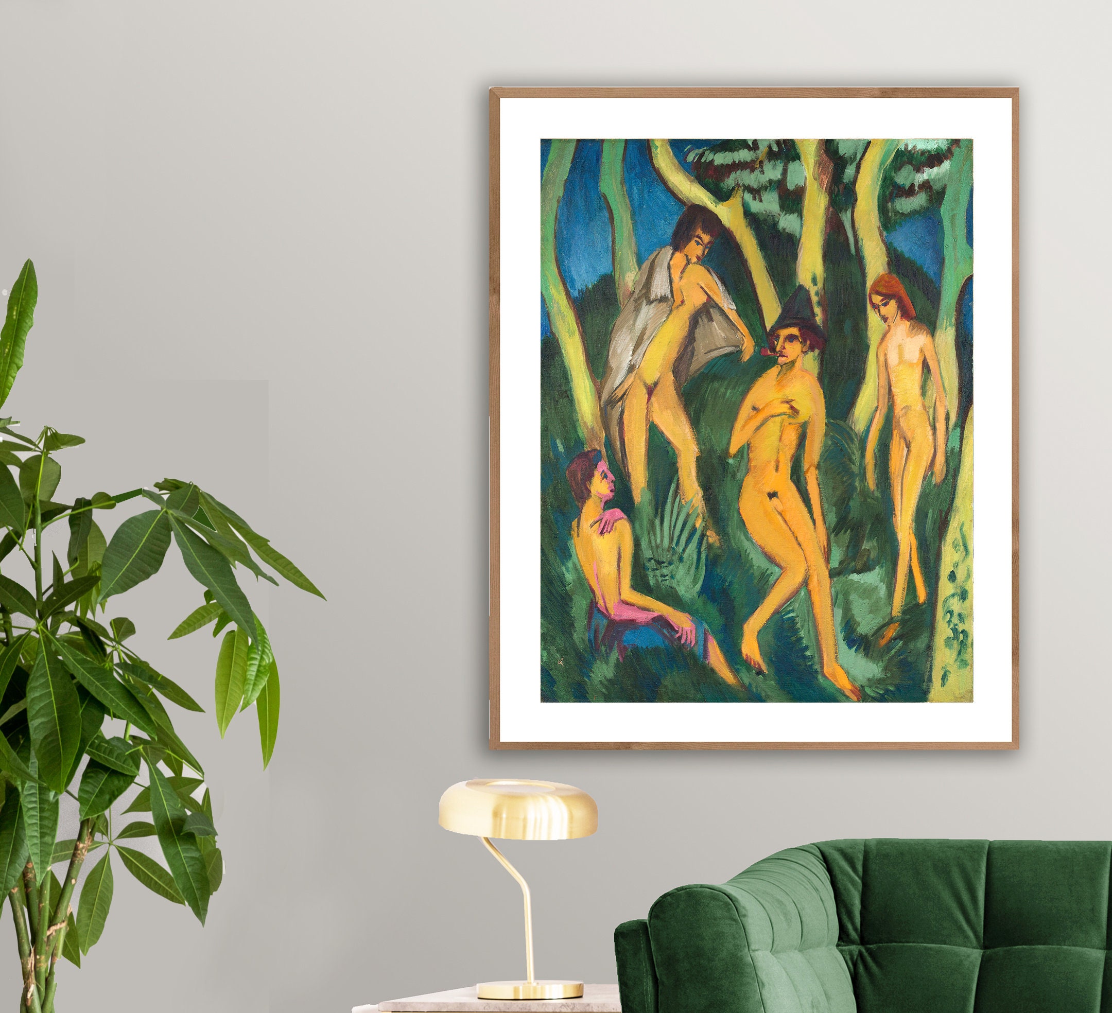 Four Nudes Under Trees by Ernst Ludwig Kirchner, Fine Art Print, Expressionist Poster, Modern Artwork, Colorful Décor, Nude Wall Art
