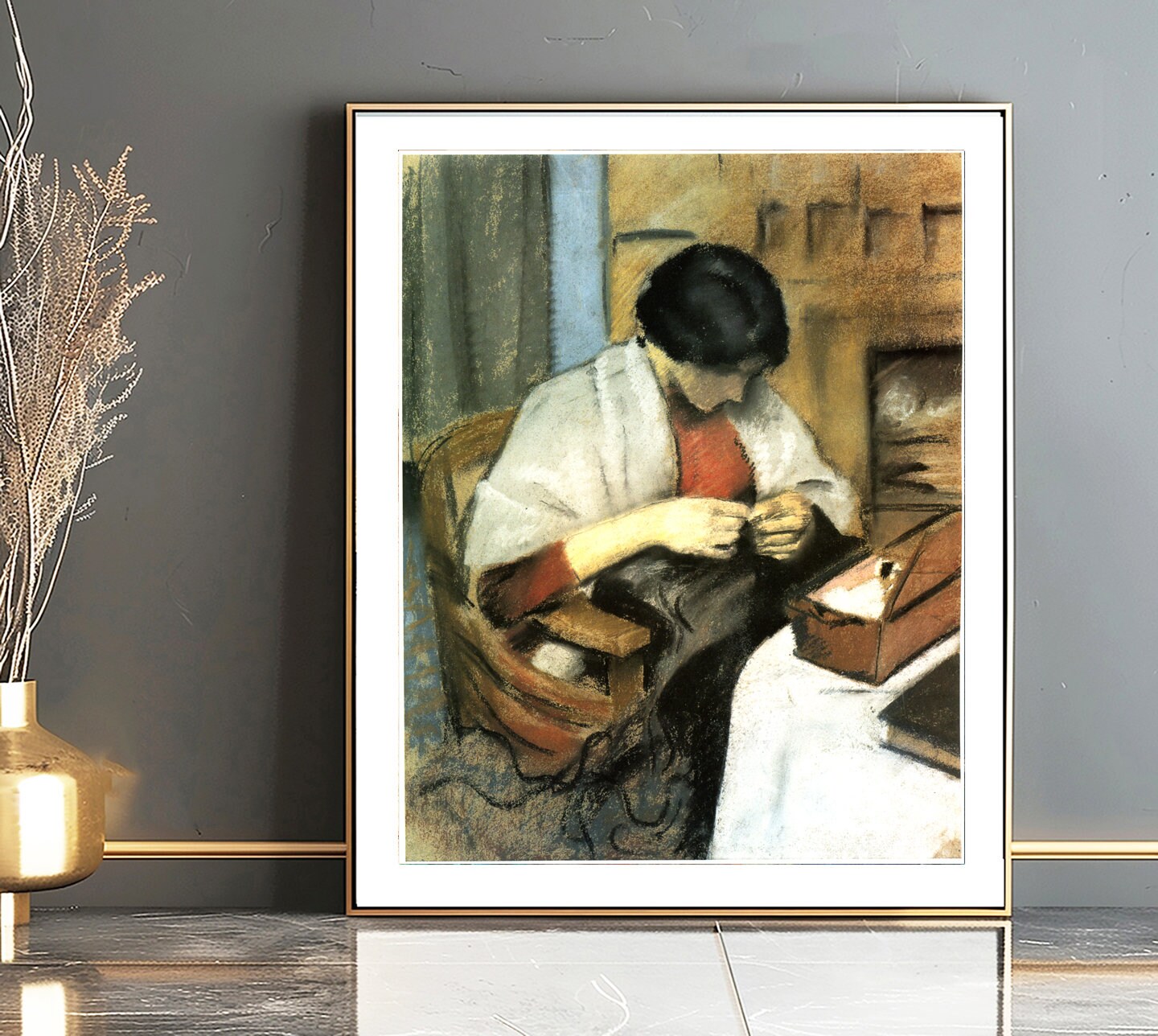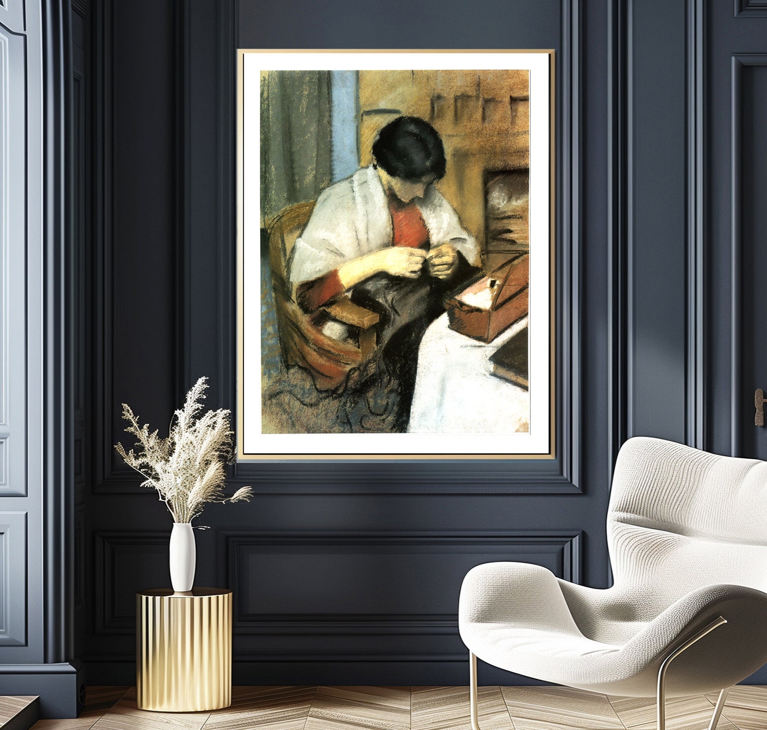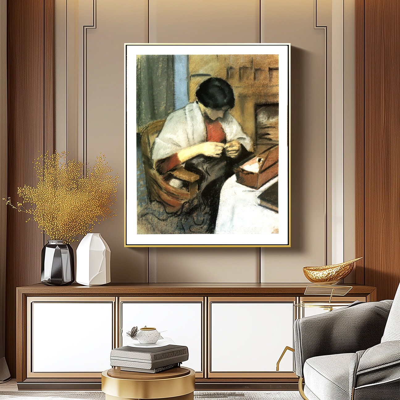 Auguste Macke 'Sewing Girl' Fine Art Print: Figurative Painting