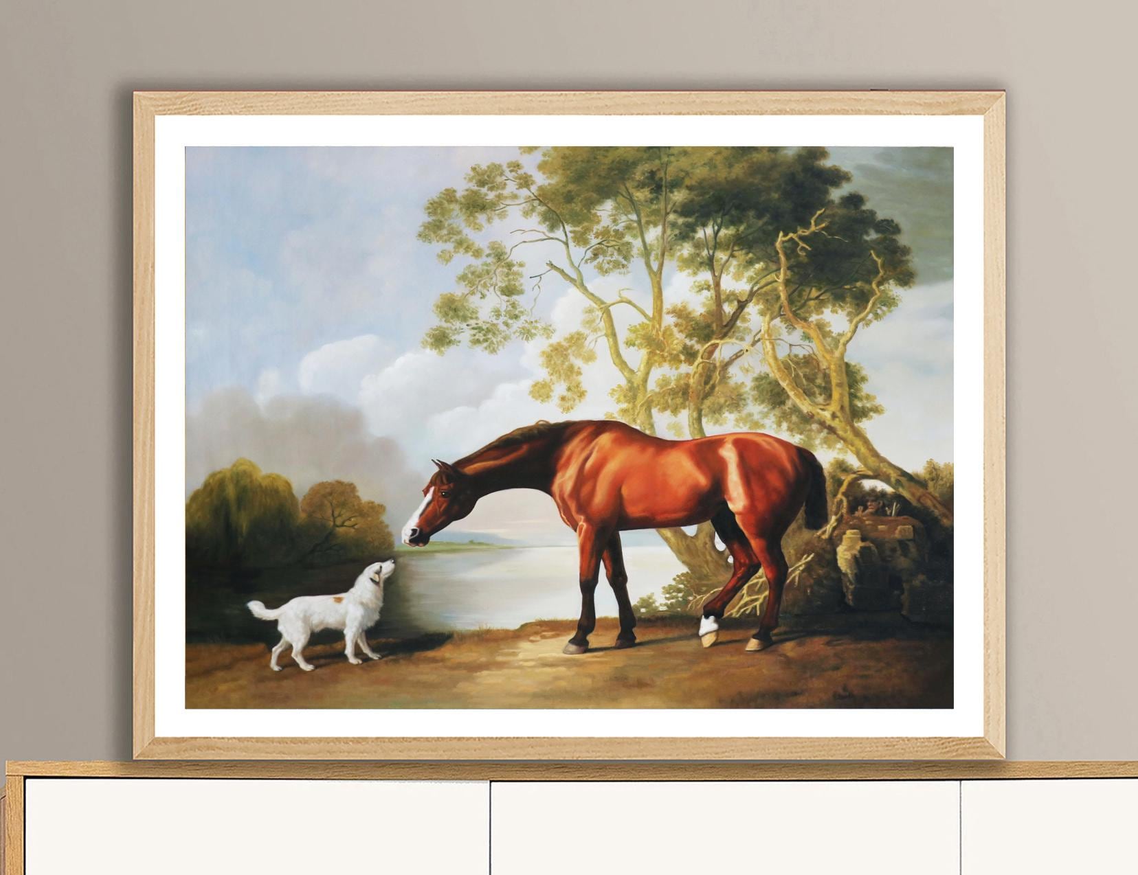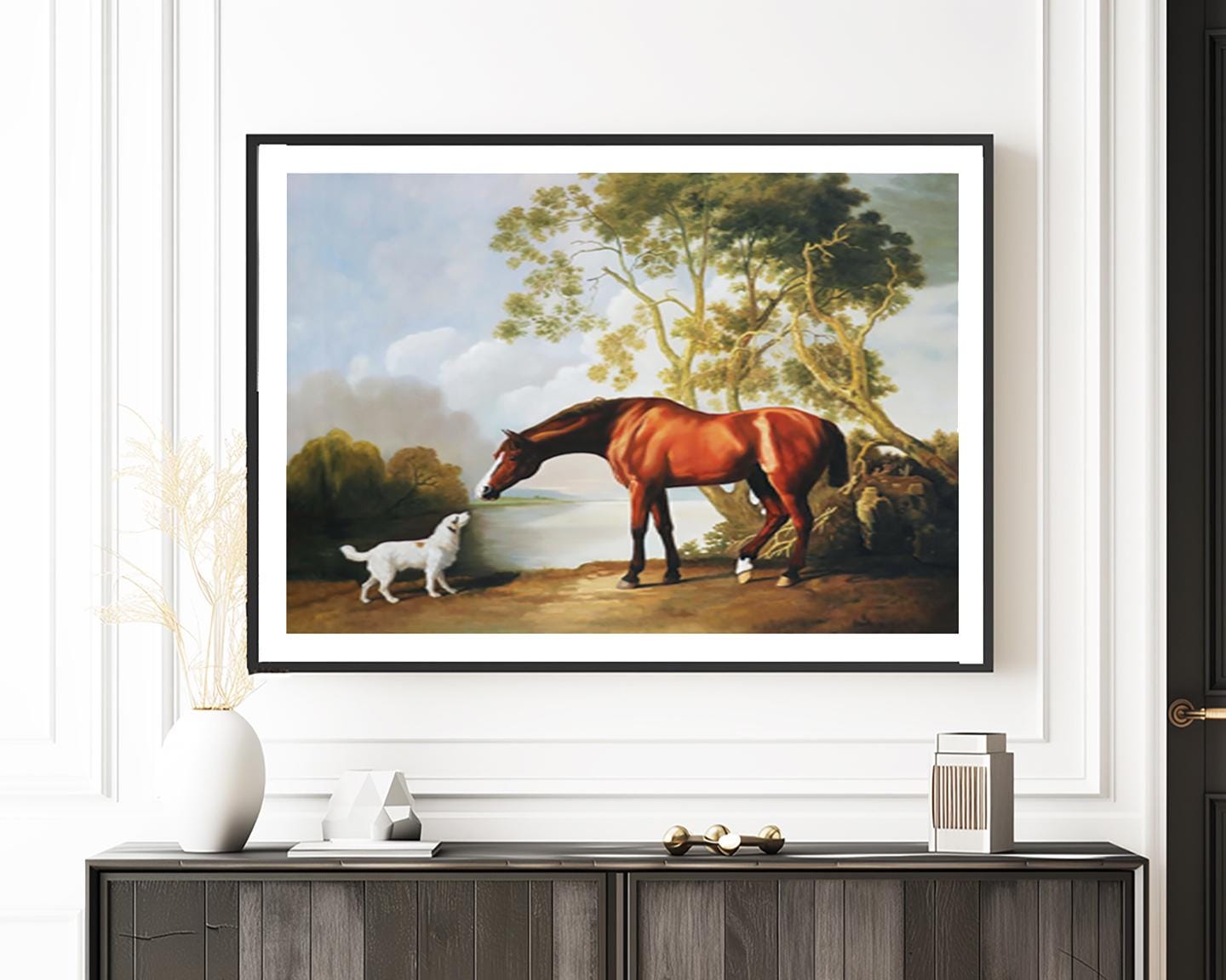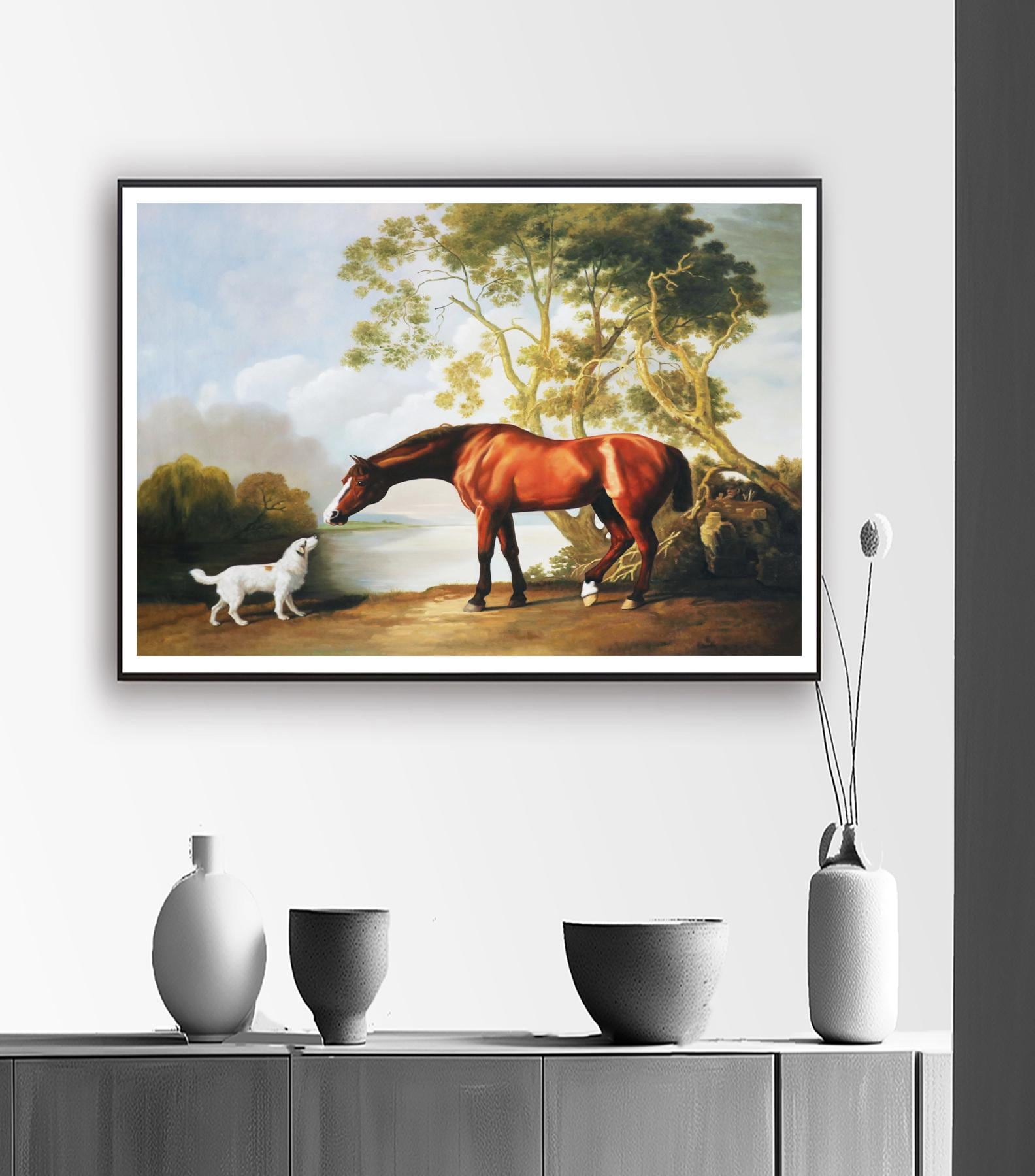 Bay Horse and White Dog by George Stubbs Fine Art Print - Poster Paper or Canvas Print