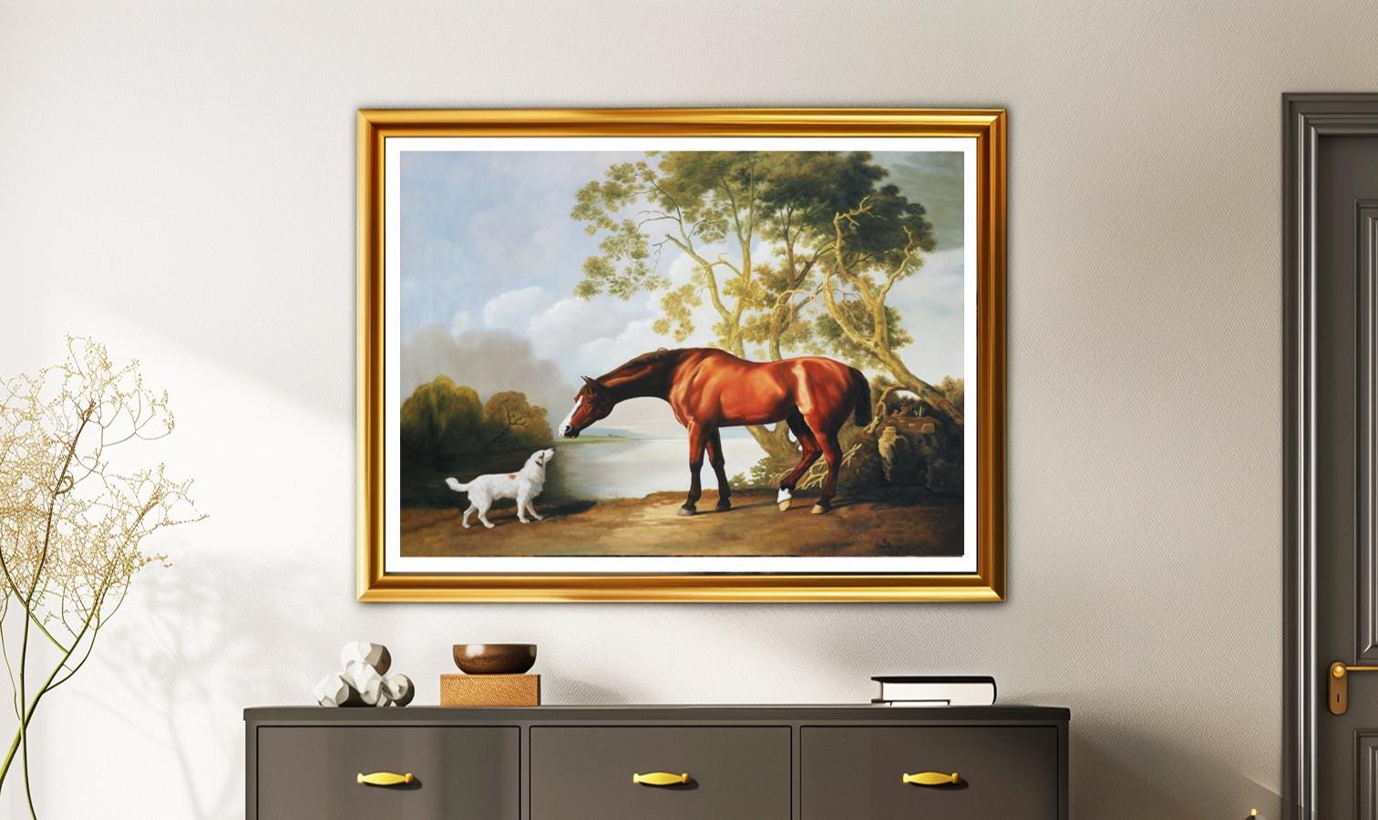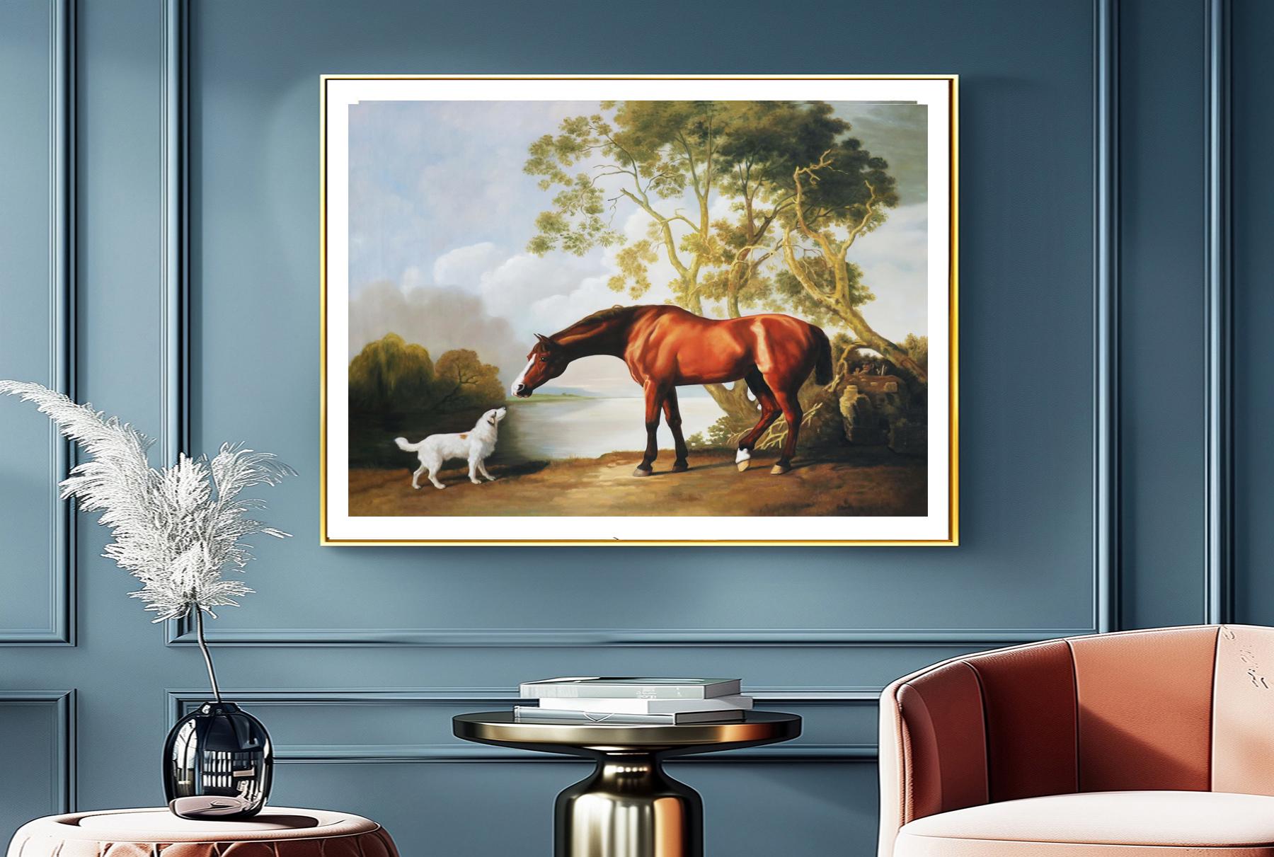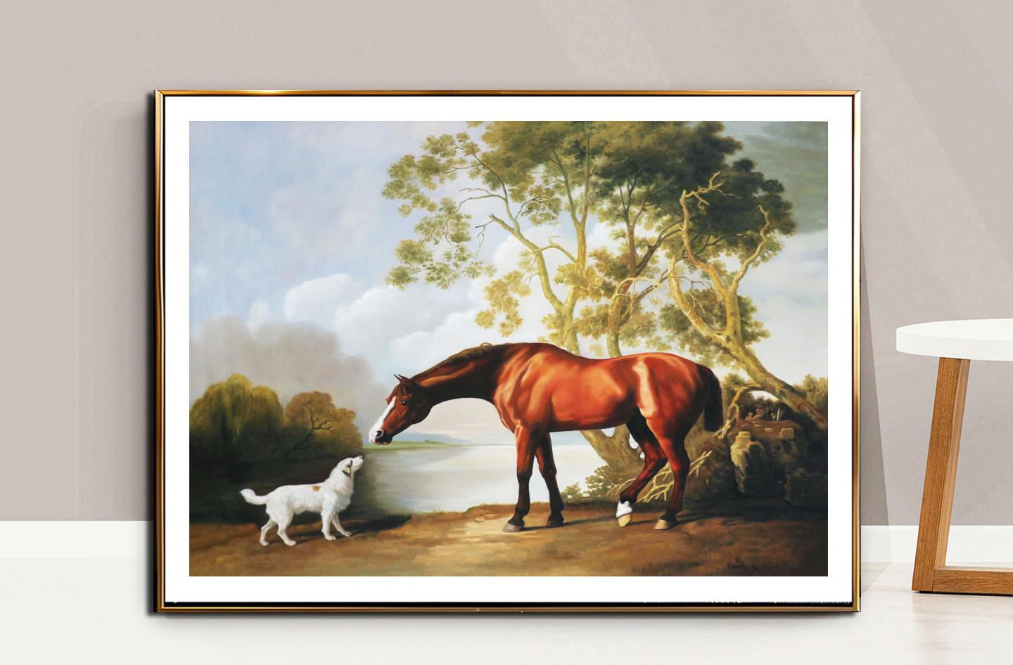 Bay Horse and White Dog by George Stubbs Fine Art Print - Poster Paper or Canvas Print