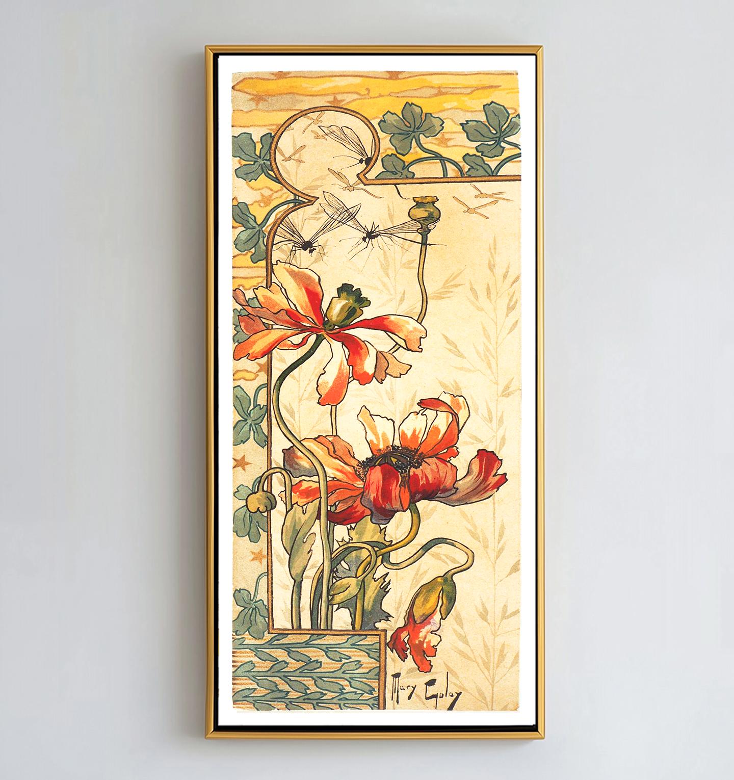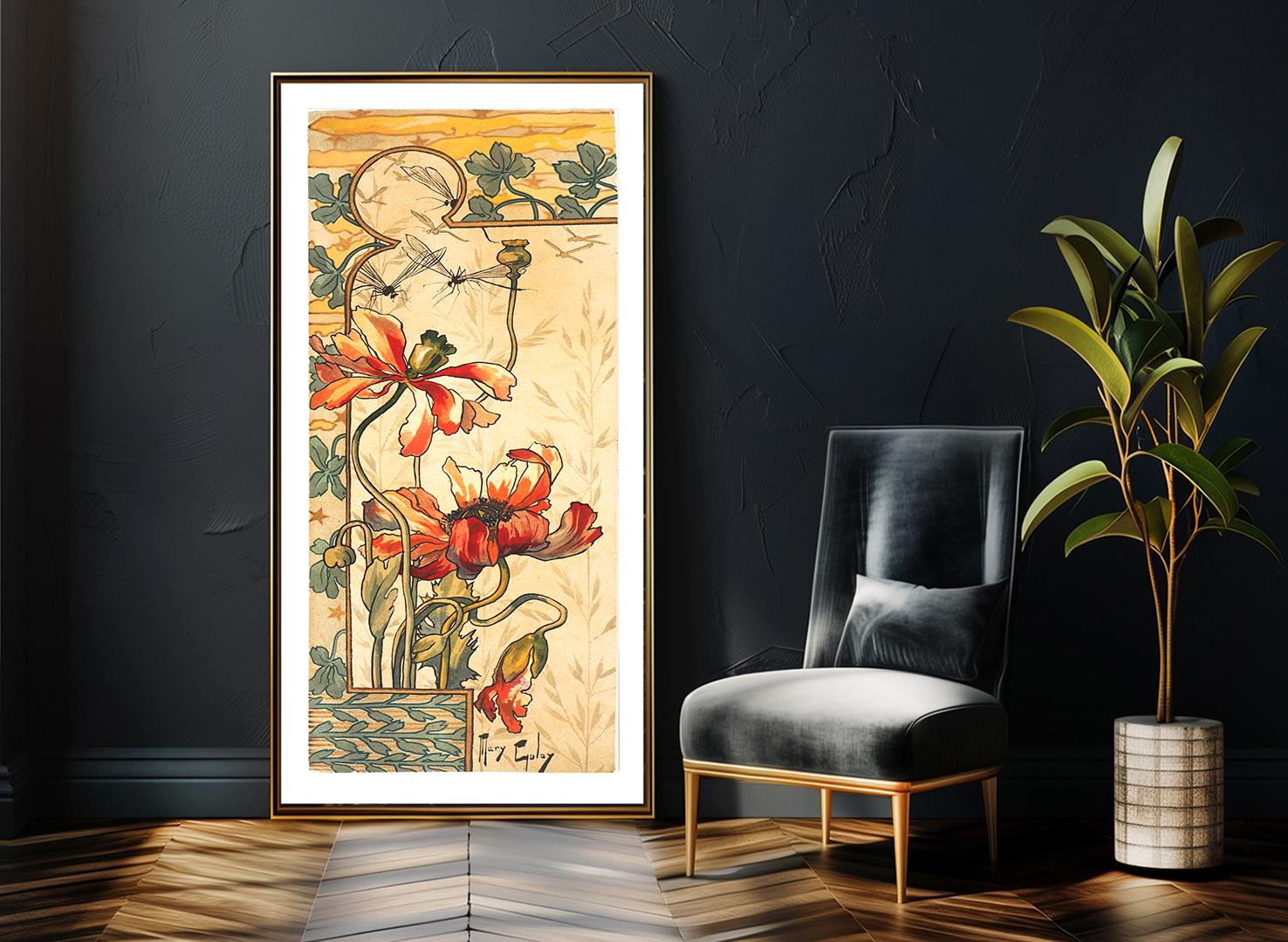 Stylized Red Poppies and Flydragons by Mary Golay Fine Art Print - Poster Paper or Canvas Print / Gift Idea