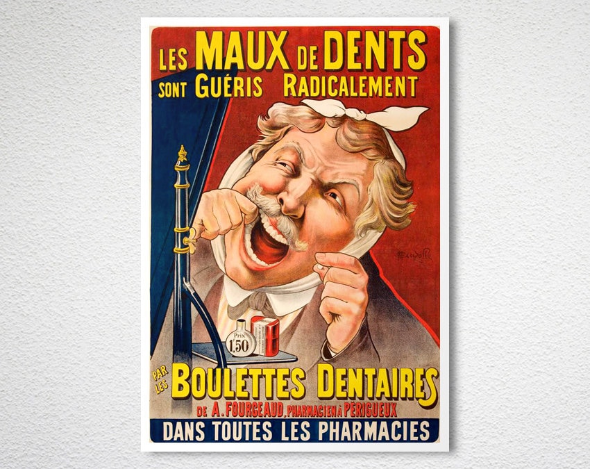 Les Maux de Dents Sont Gueris Radicalement Vintage Poster by Marcellin Auzolle - Poster Paper or Canvas Print / Gift Idea