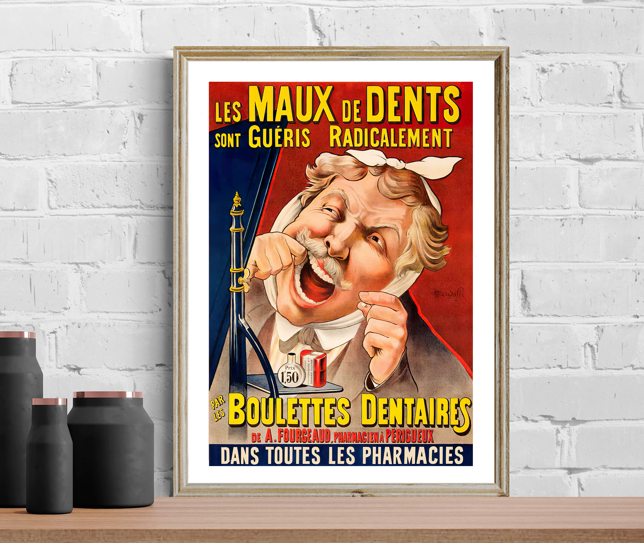 Les Maux de Dents Sont Gueris Radicalement par Les Boulettes Dentaires Vintage Poster by Marcellin Auzolle - Poster Paper or Canvas Print / Gift Idea