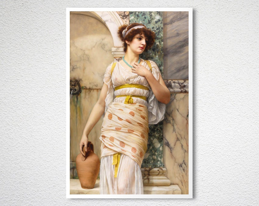 At the Fountain by John William Godward Fine Art Print - Poster Paper or Canvas Print / Gift Idea
