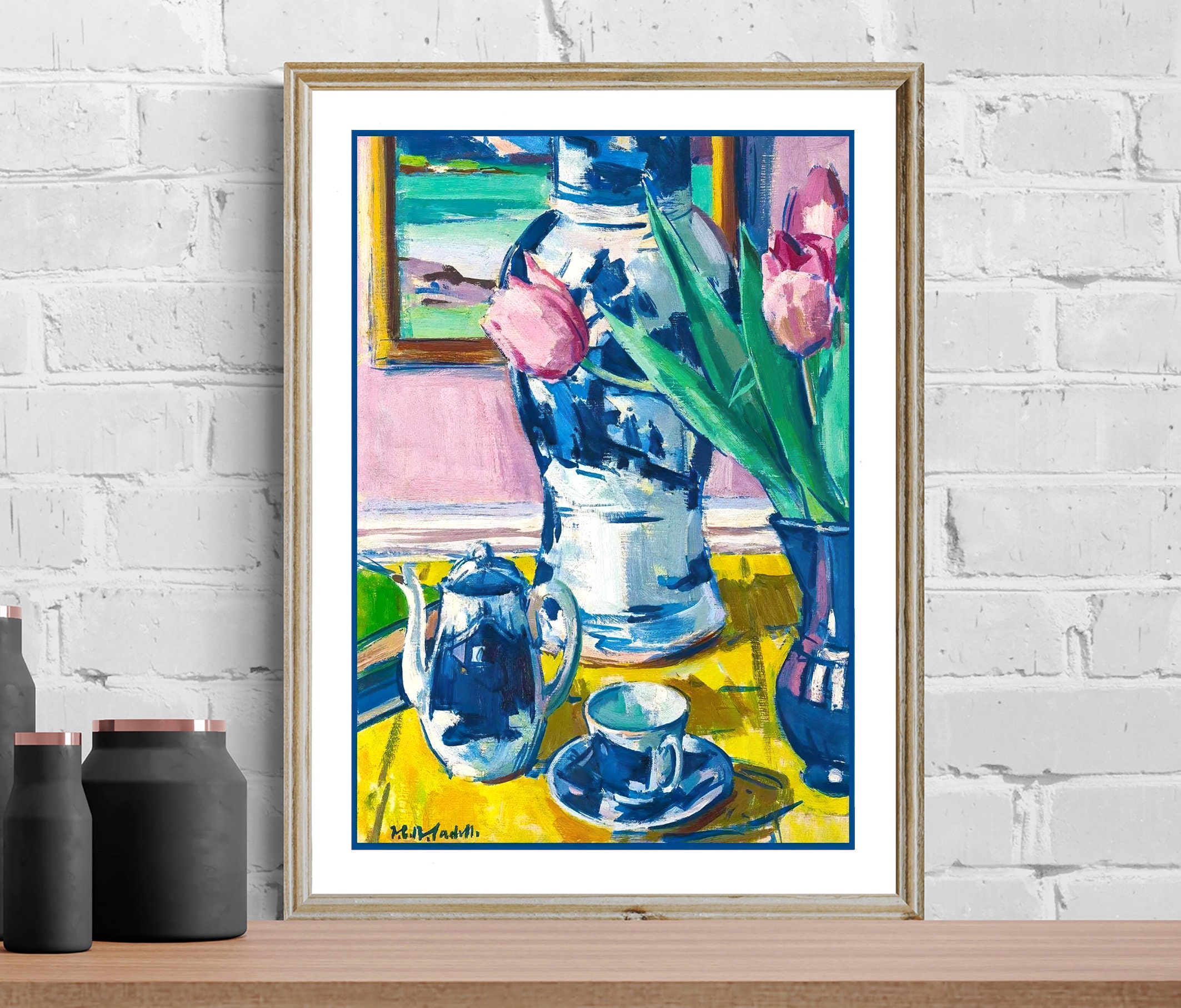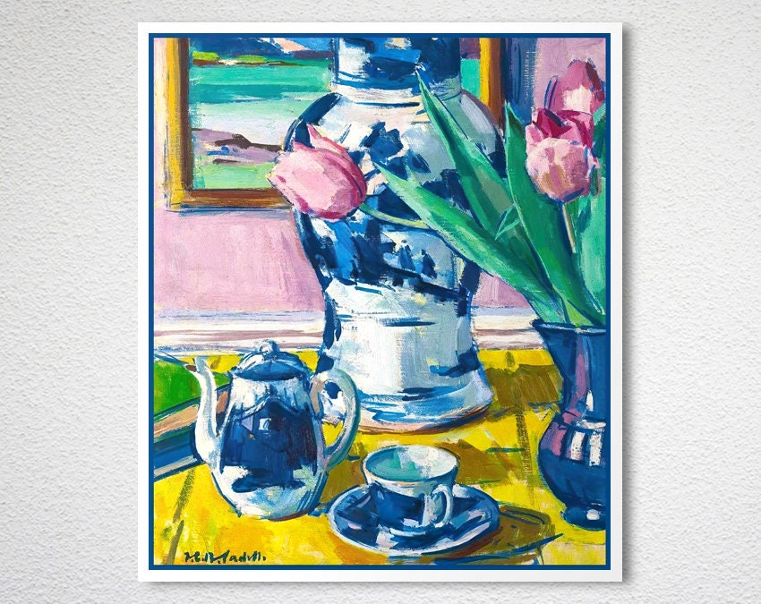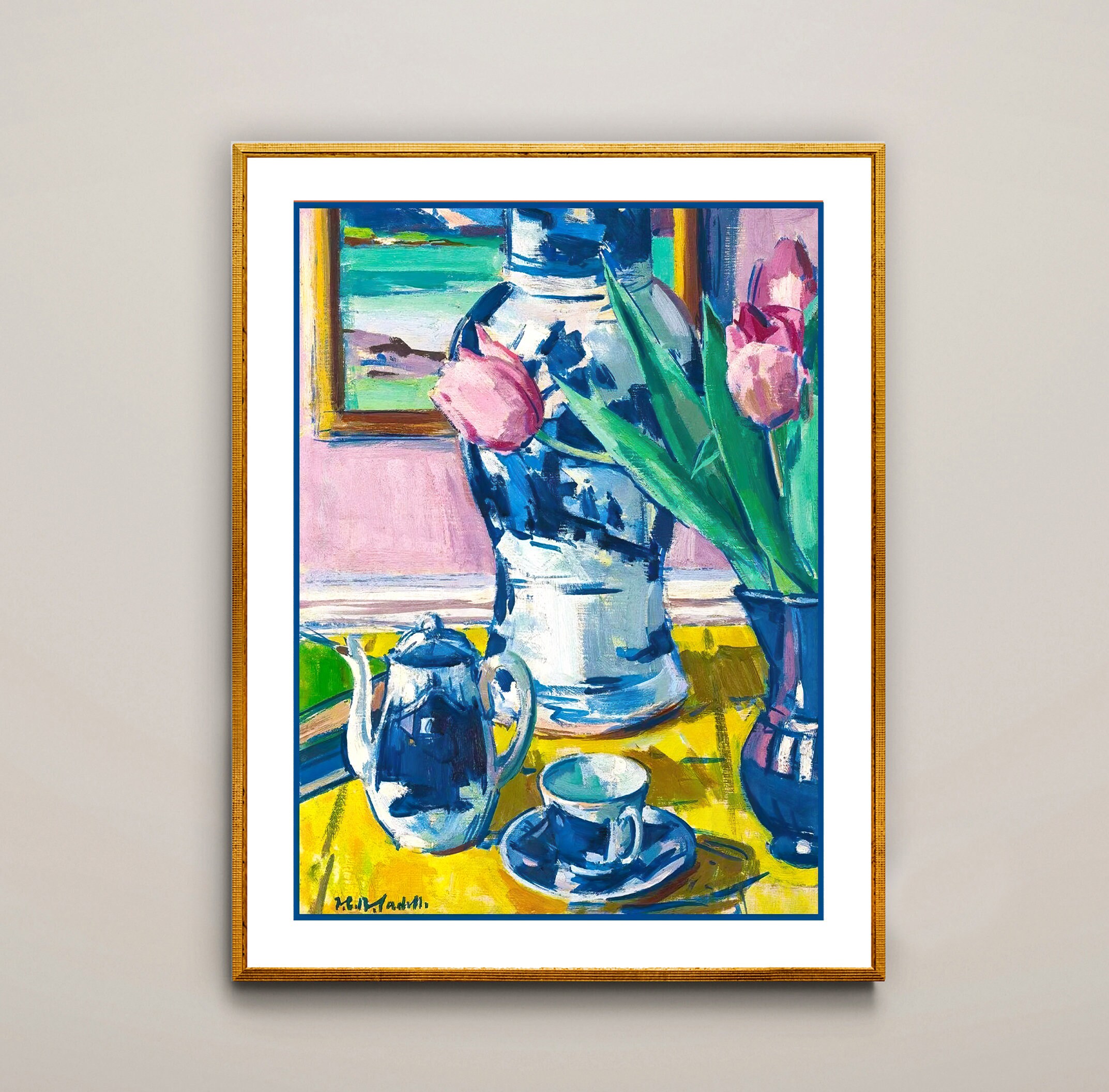 Still Life, Pink Tulip Flowers by Francis Campbell Boileau Cadell Fine Art Print - Poster Paper or Canvas Print / Gift Idea