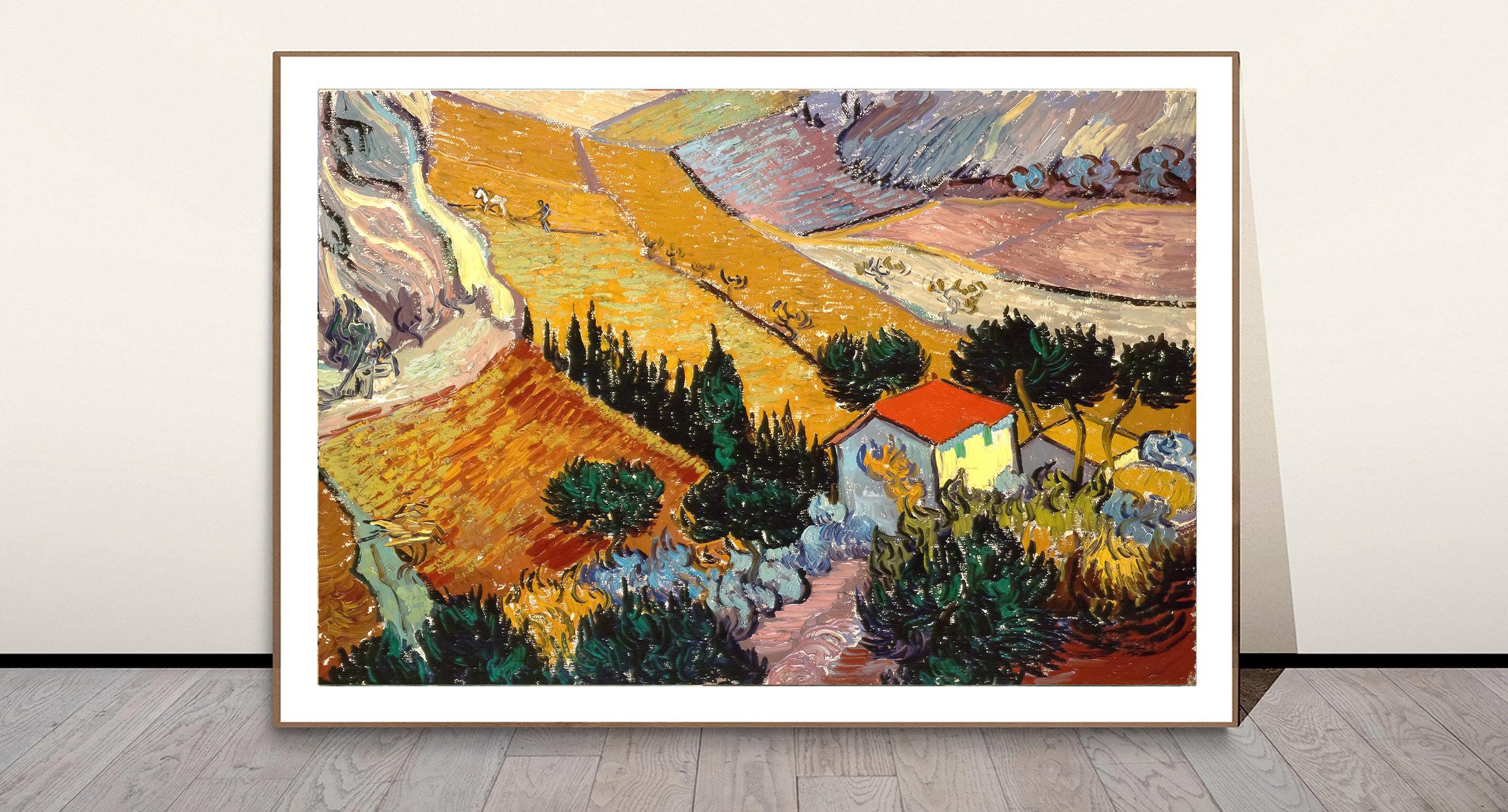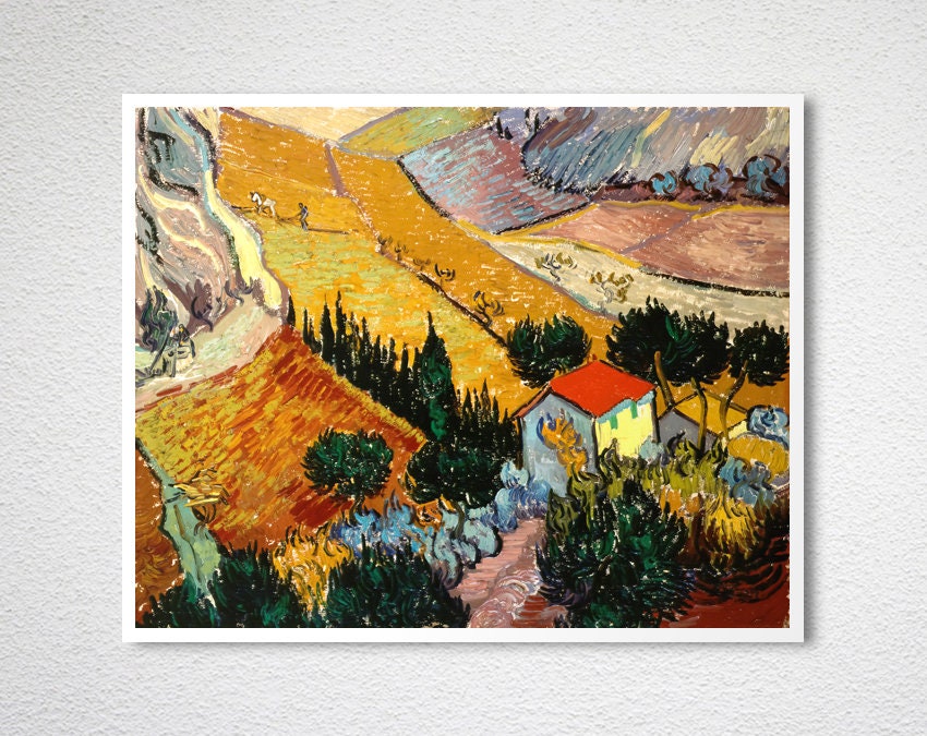 Landscape with House and Ploughman, 1889 by Vincent Van Gogh Fine Art Print - Poster Paper or Canvas Print / Gift Idea