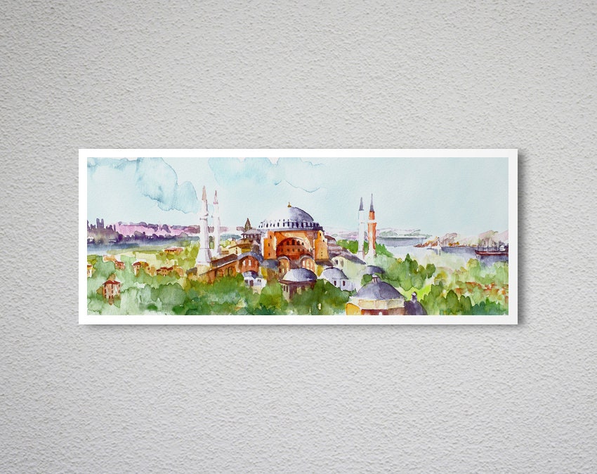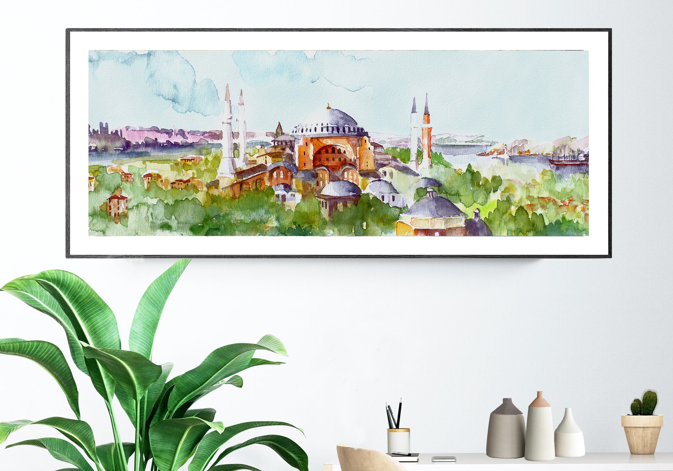 Hagia Sophia Watercolor Painting: Istanbul Panoramic Print