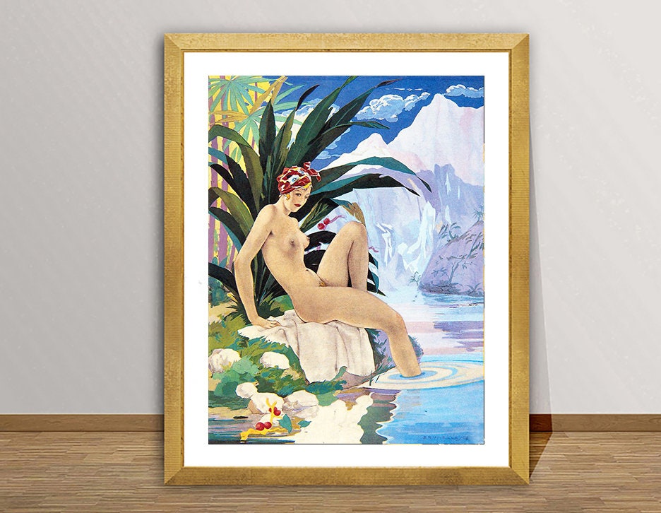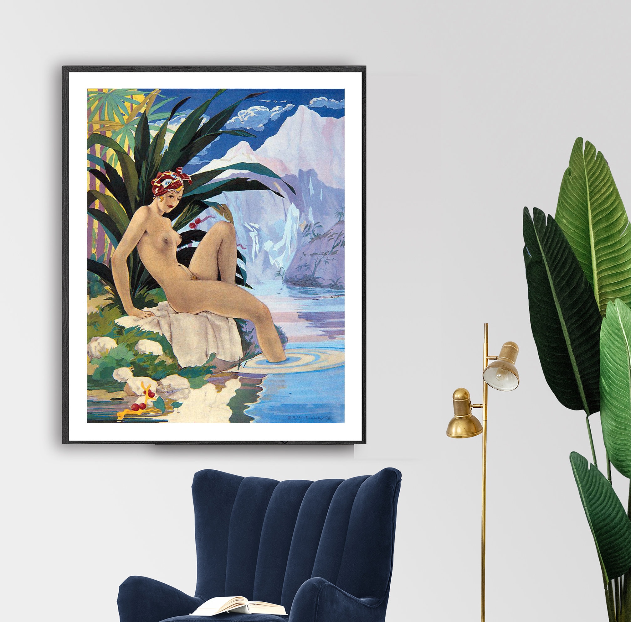 Lady Bather by Pool by Umberto Brunelleschi Fine Art Print - Female Nude Painting / Gift Idea / Wall Decor