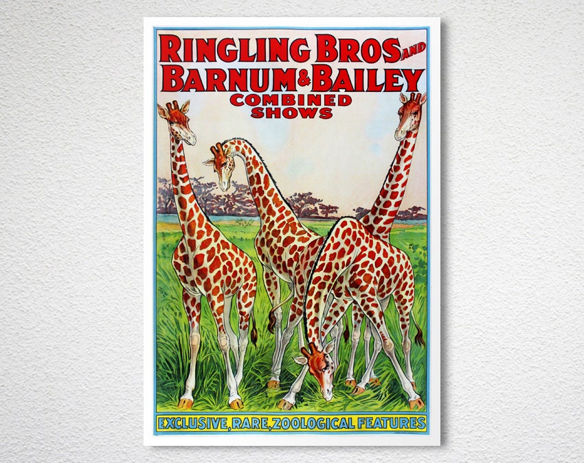 Ringling Bros and Barnum&Bailey Combined Shows Vintage Poster - Poster Paper or Canvas Print / Gift Idea