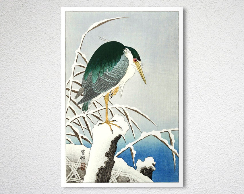 Heron is Snow by Ohara Koson Fine Art Print - Poster Paper, Canvas Print