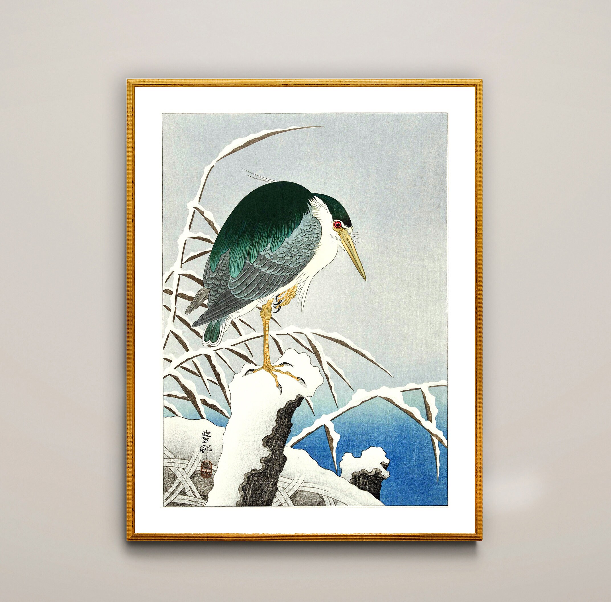 Ohara Koson Heron in Snow Print: Japanese Ukiyo-e Art