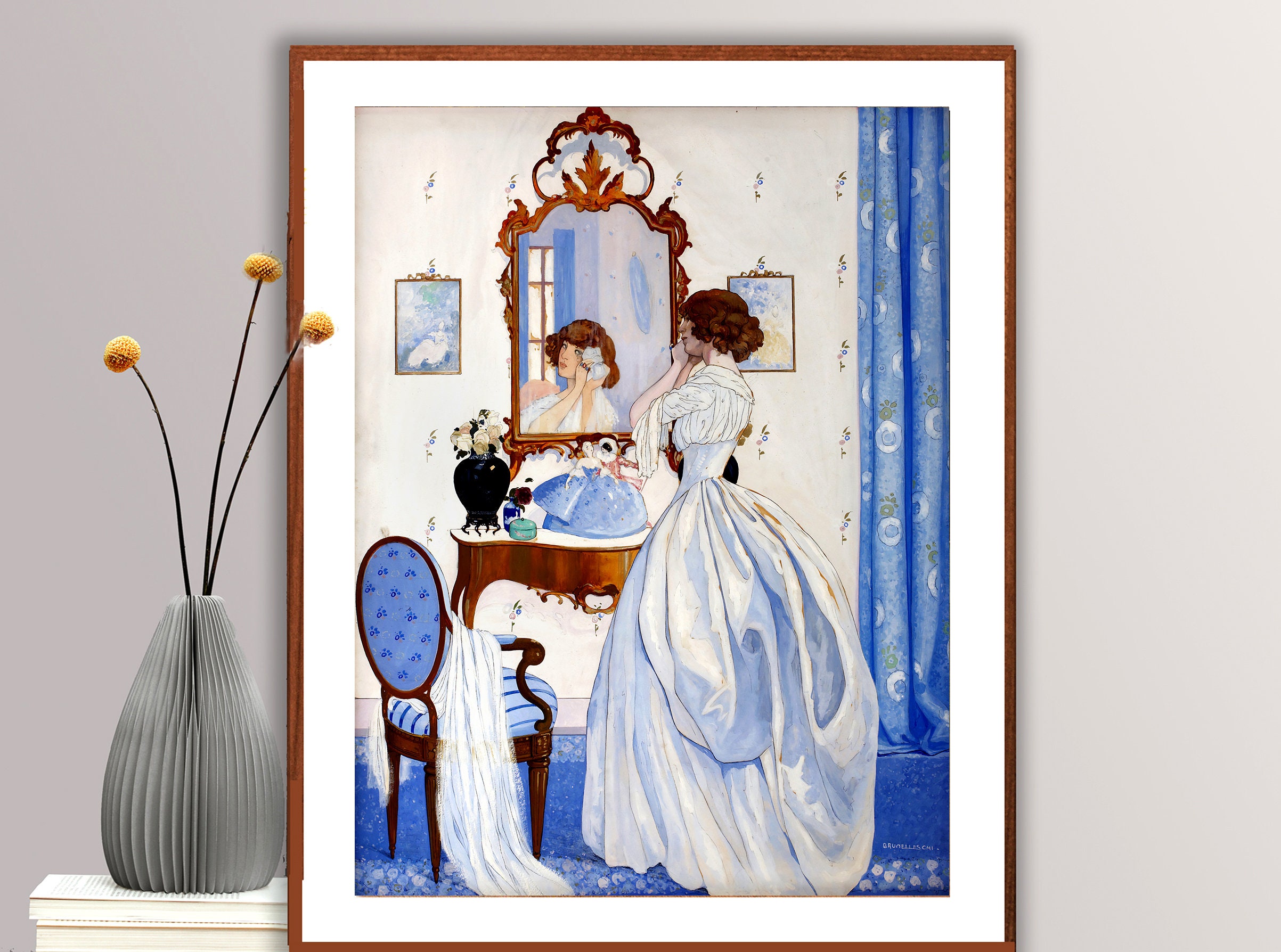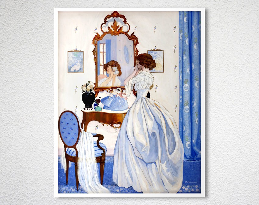 Brunelleschi 'Girl at a Mirror' Art Print: Fashion Illustration, Woman Wall Decor