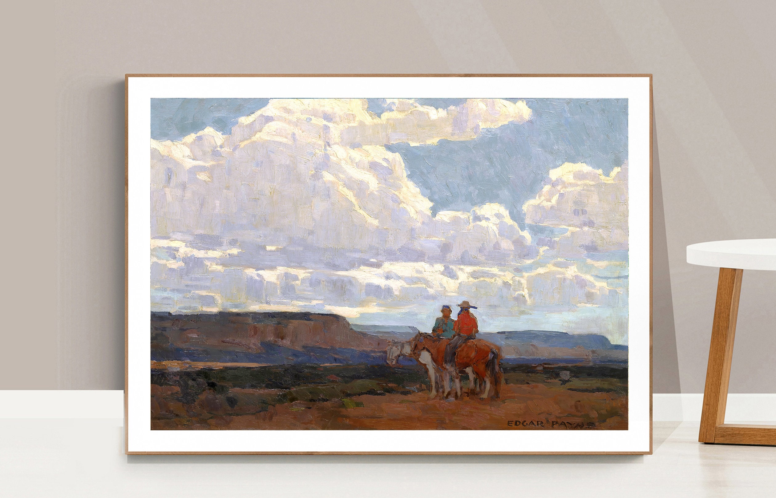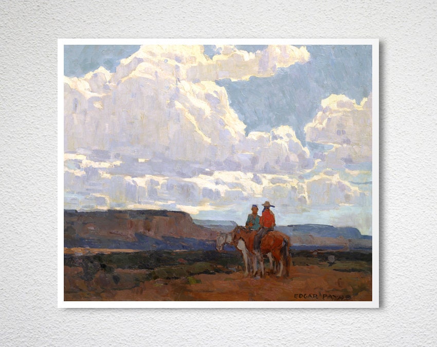 Printed on high quality paper, cotton canvas or adhesive sticker paper. A high quality reproduction of painting by Edgar Alwin Payne. Professional packaging for safe shipping. Natural white border will be added to the image for mounting and framing.