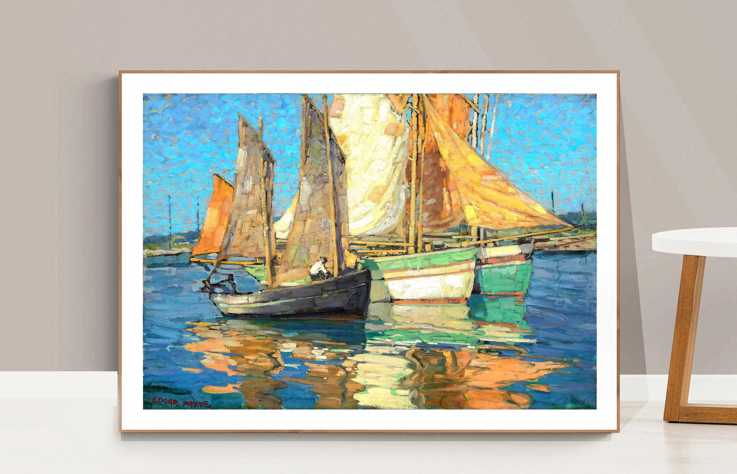 Breton Boats Art Print by Edgar Payne: Nautical Seascape Wall Decor
