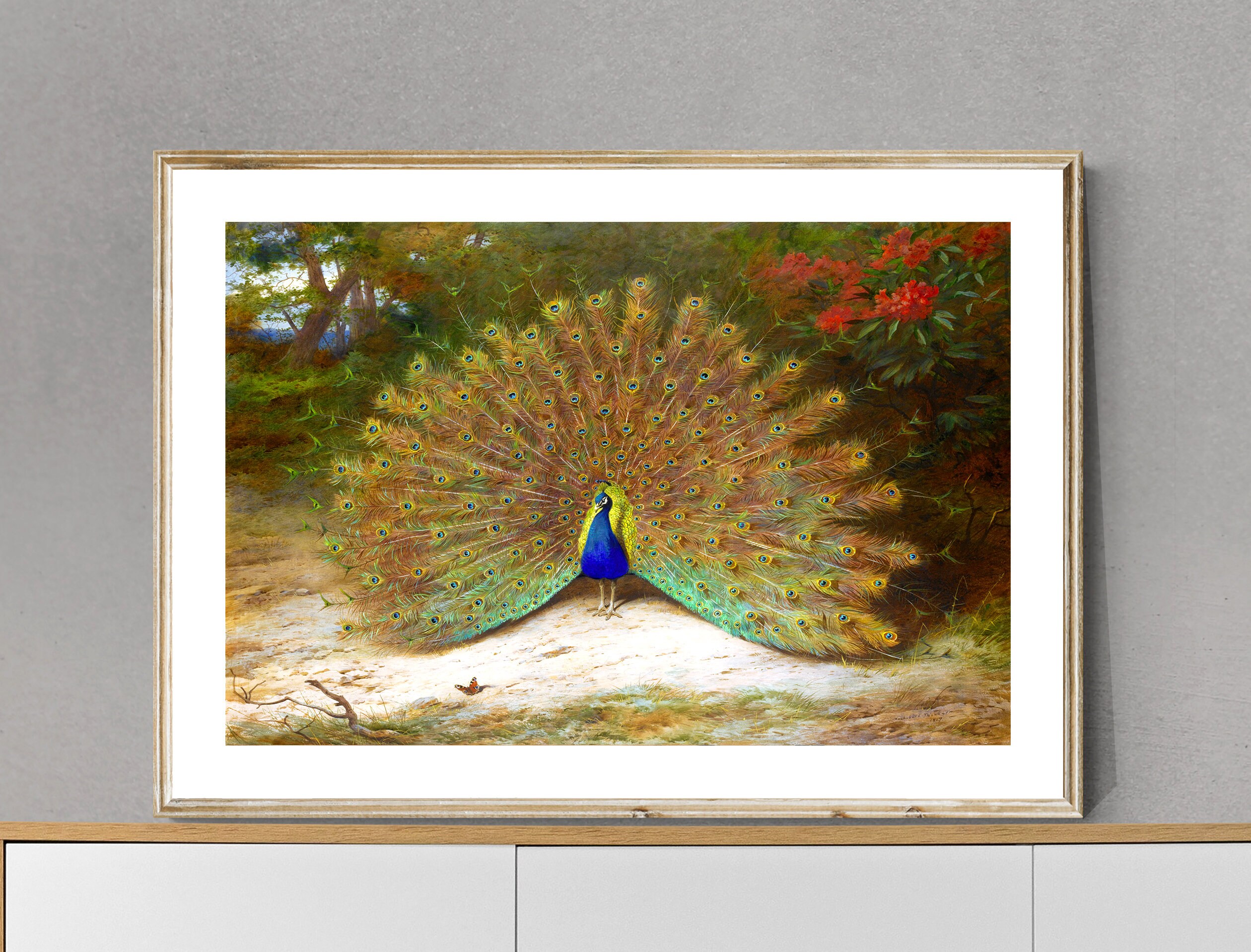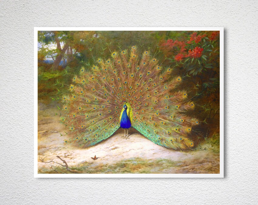 Peacock and Peacock Butterfly by Archibald Thorburn Fine Art Print, Animal Lover Gift, Bird Painting, Nature Wall Art, Wildlife Artwork