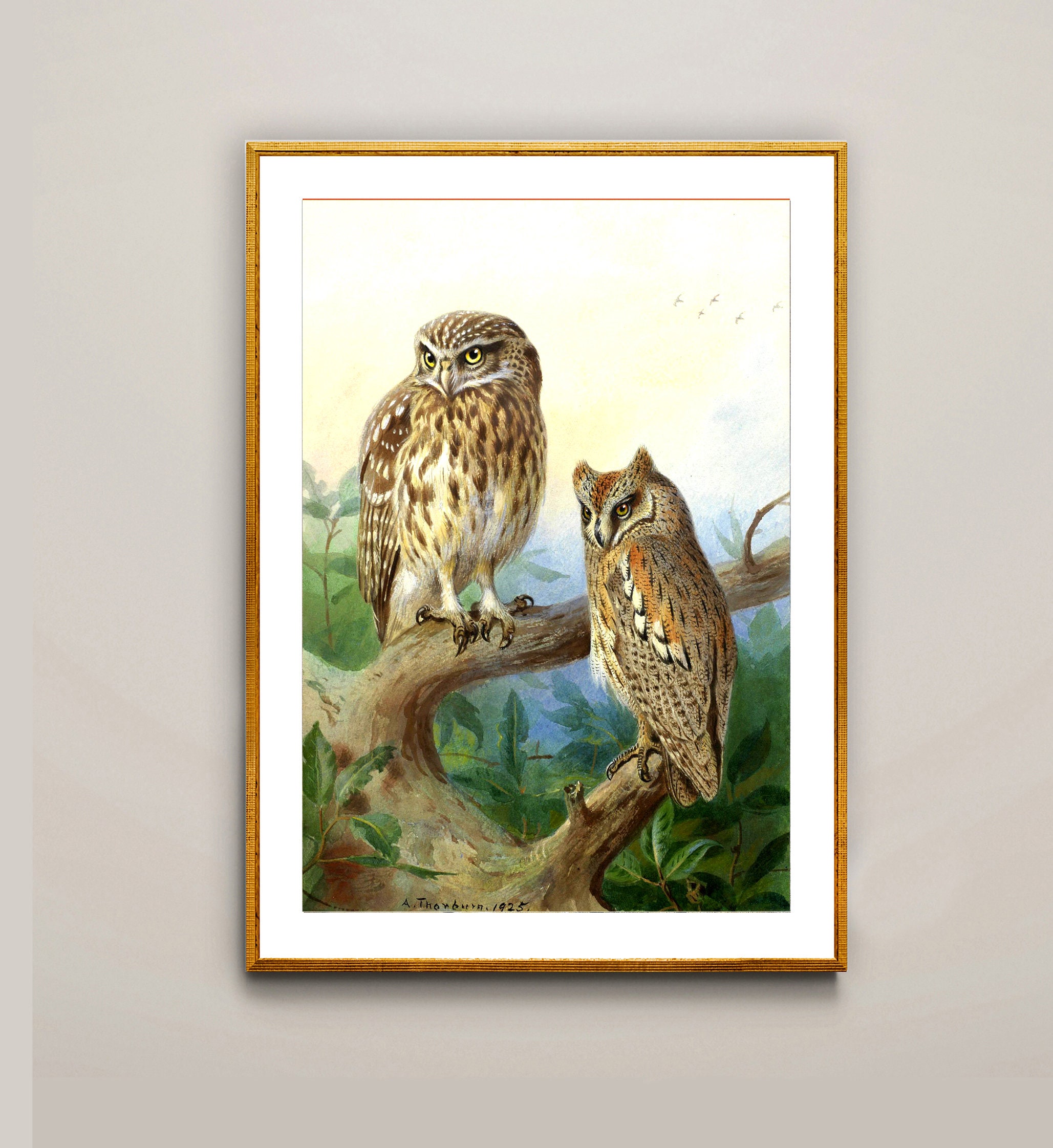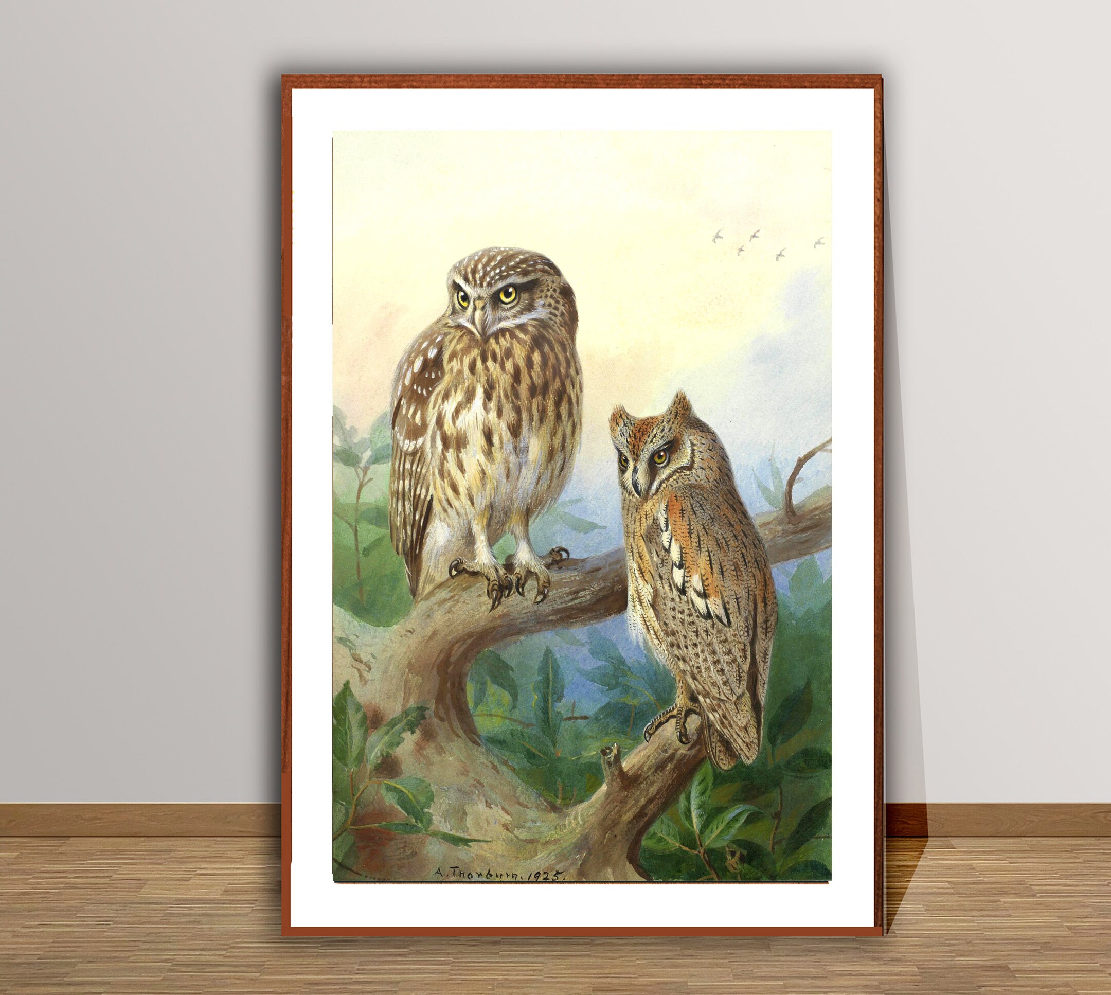 Owl and Short Eared Owl by Archibald Thorburn Fine Art Print, Animal Lover Gift, Bird Painting, Nature Wall Art, Wildlife Artwork