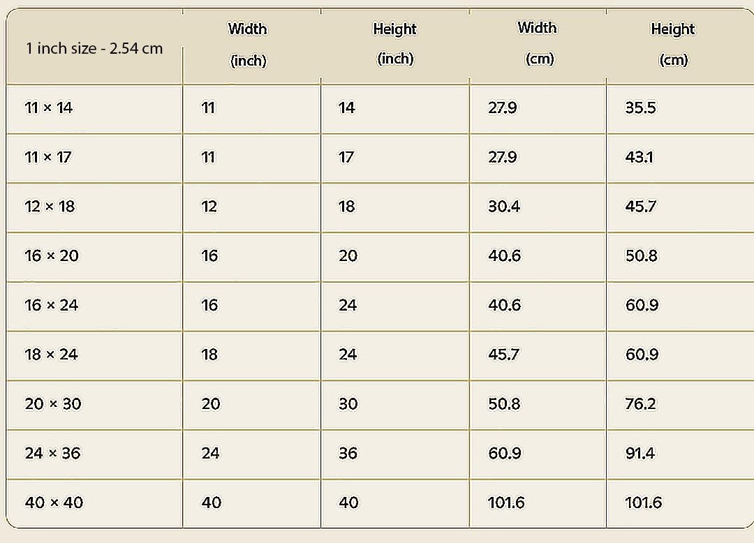 We can produce this product in many sizes other than the sizes listed. Sizes listed are in inch format. For metric sizes and other formats, please order according to the sizes below and send us the size you want in a private message or order note.