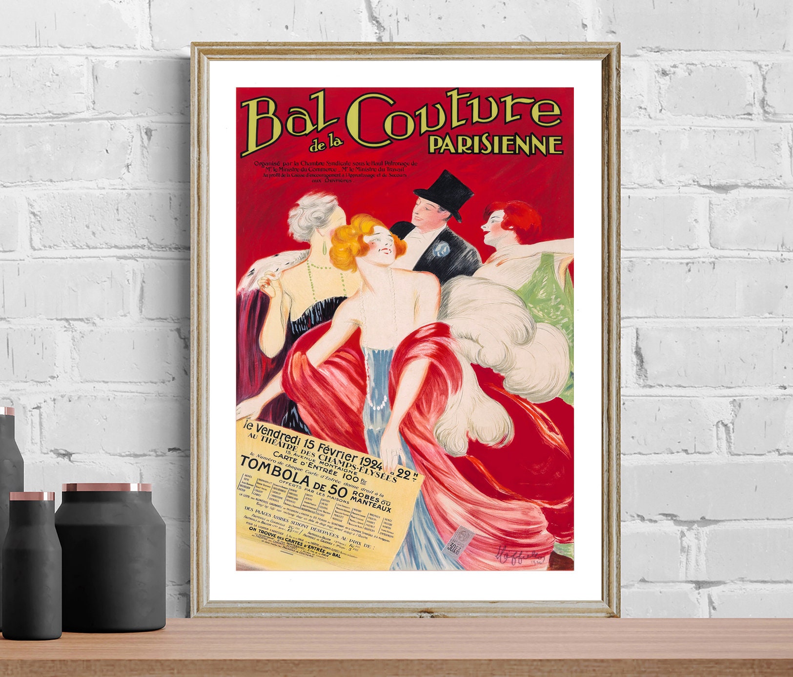 Bal de la Couture Parisienne by Leonetto Cappiello, Vintage Print, Entertainment Poster, French Ball Artwork, Retro Décor