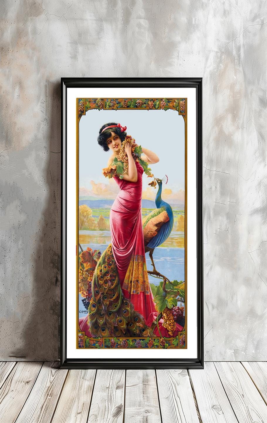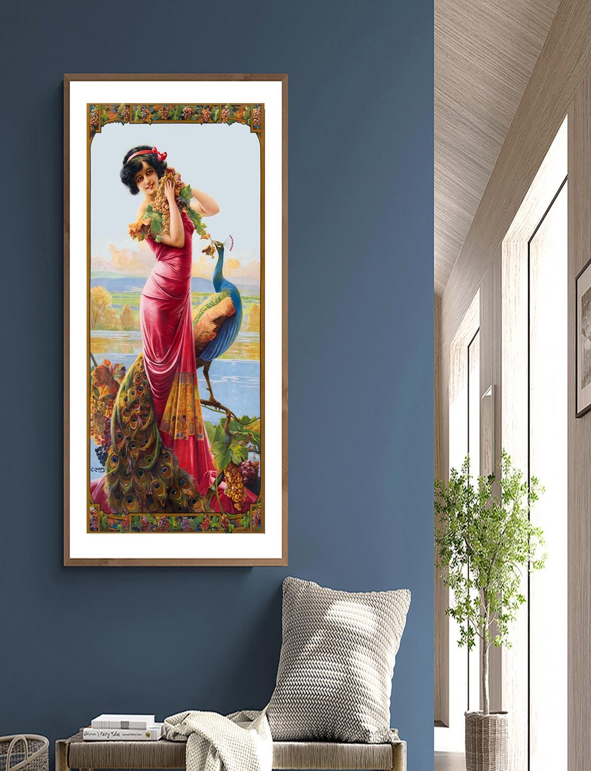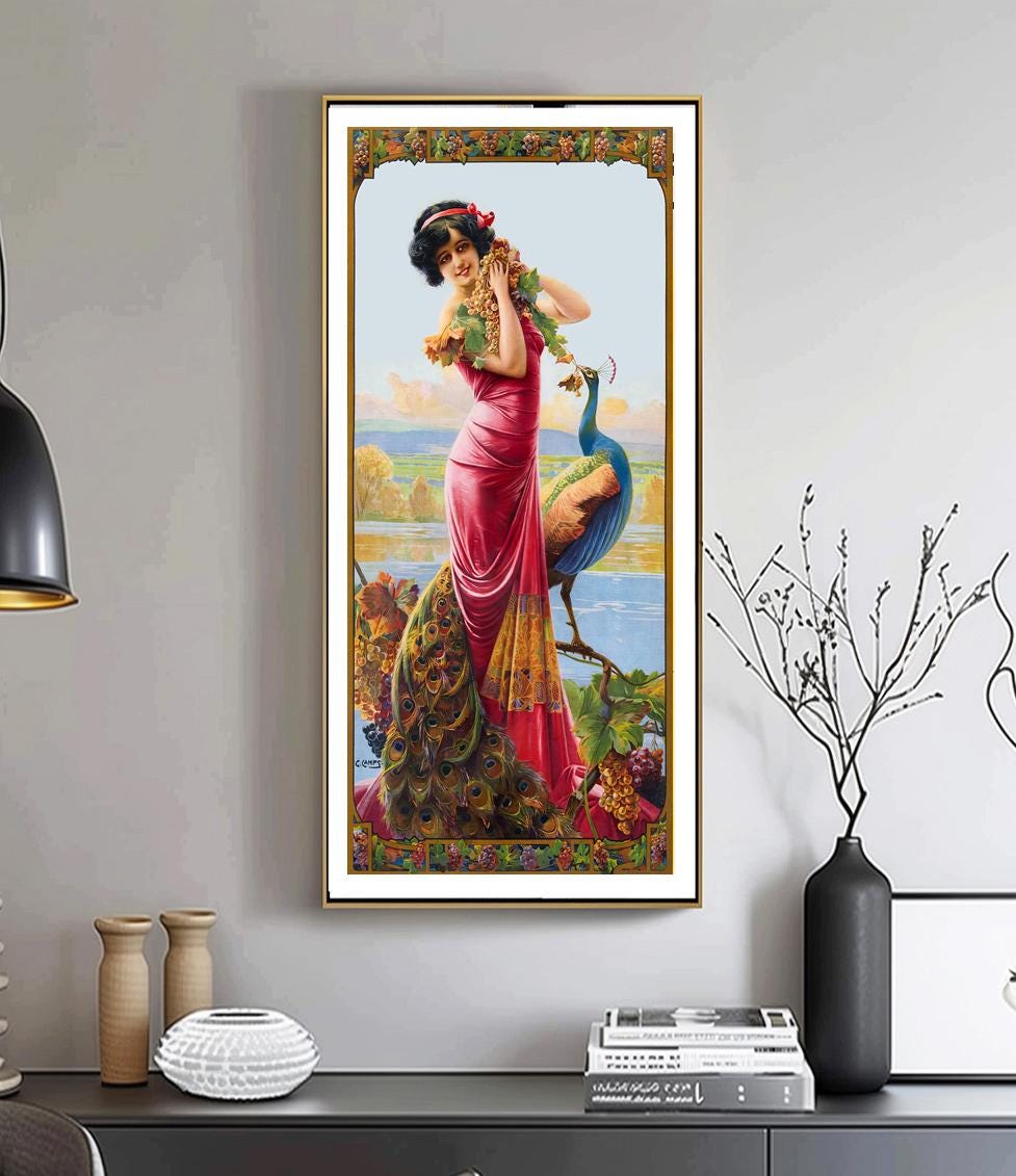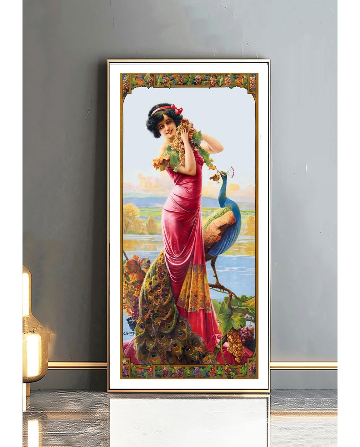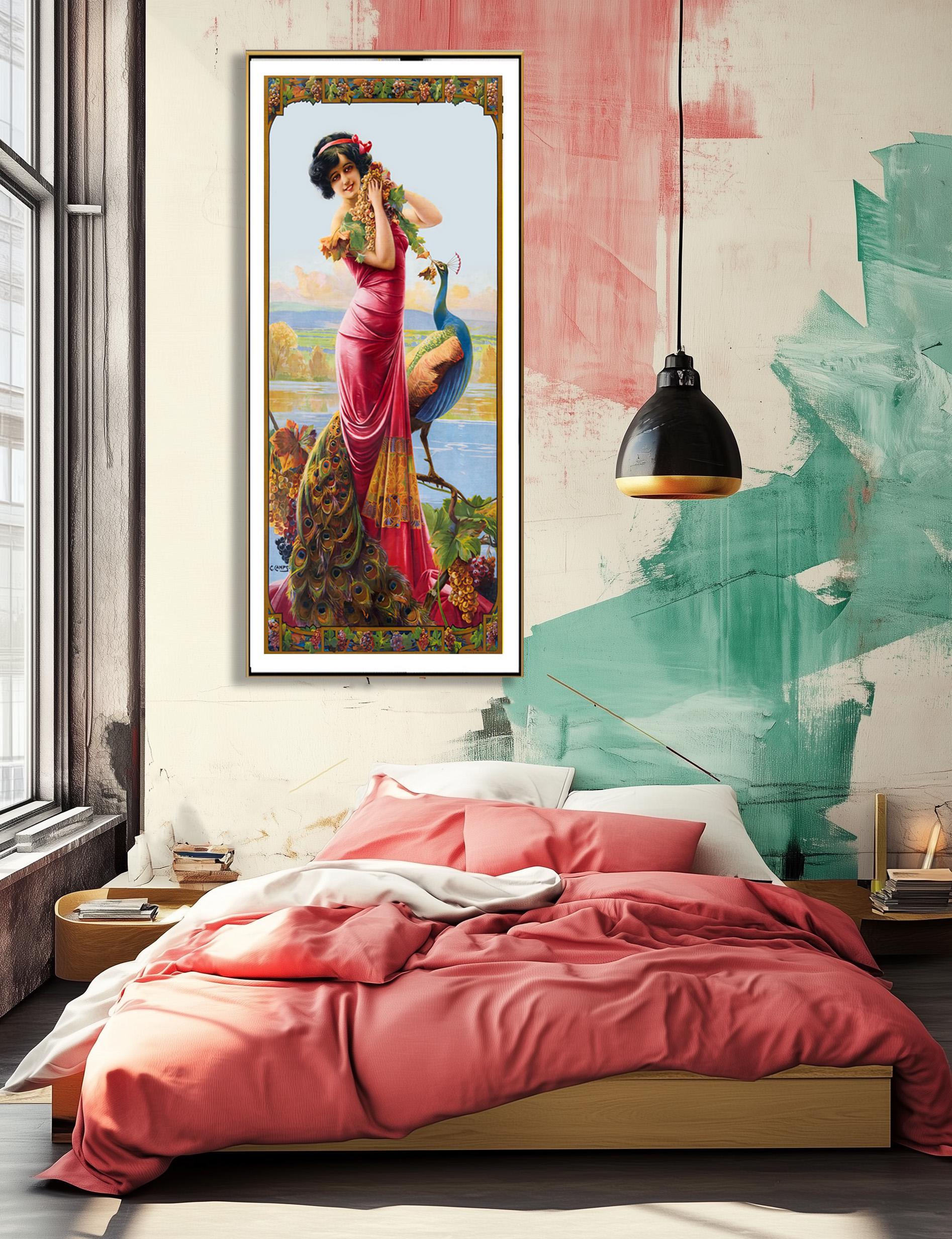 Gaspar Camps Woman with Peacock Art Nouveau Print