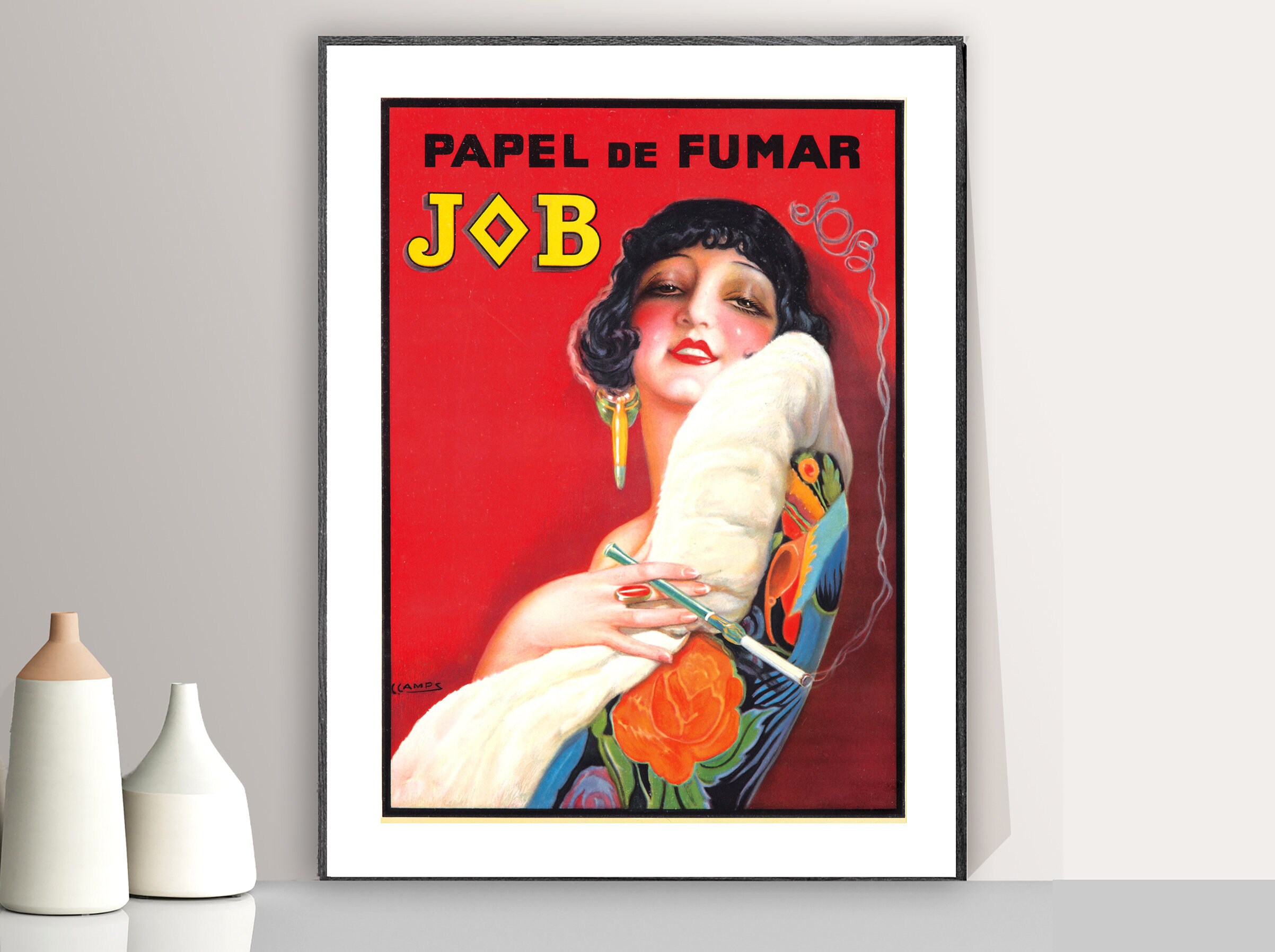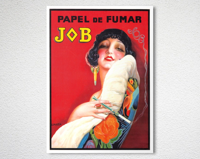 Papel du Fumar Job Vintage Poster by Gaspar Camps - Poster Paper or Canvas Print / Gift Idea
