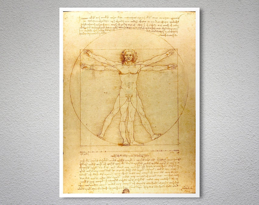 Vitruvian Man by Leonardo Da Vinci Fine Art Print - Poster Paper or Canvas Print / Gift Idea / Christmas Gift