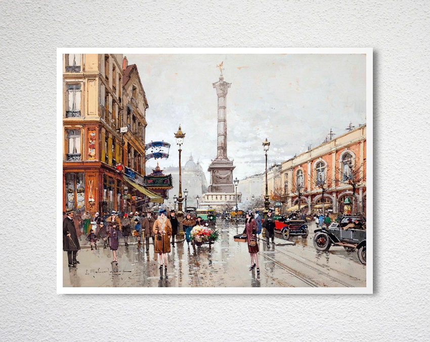 Place de la Bastille, Paris by Eugene Galien Laloue Fine Art Print - Poster Paper or Canvas Print / Gift Idea