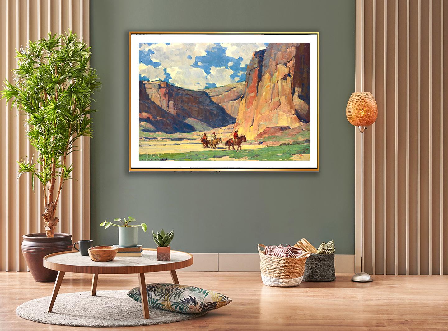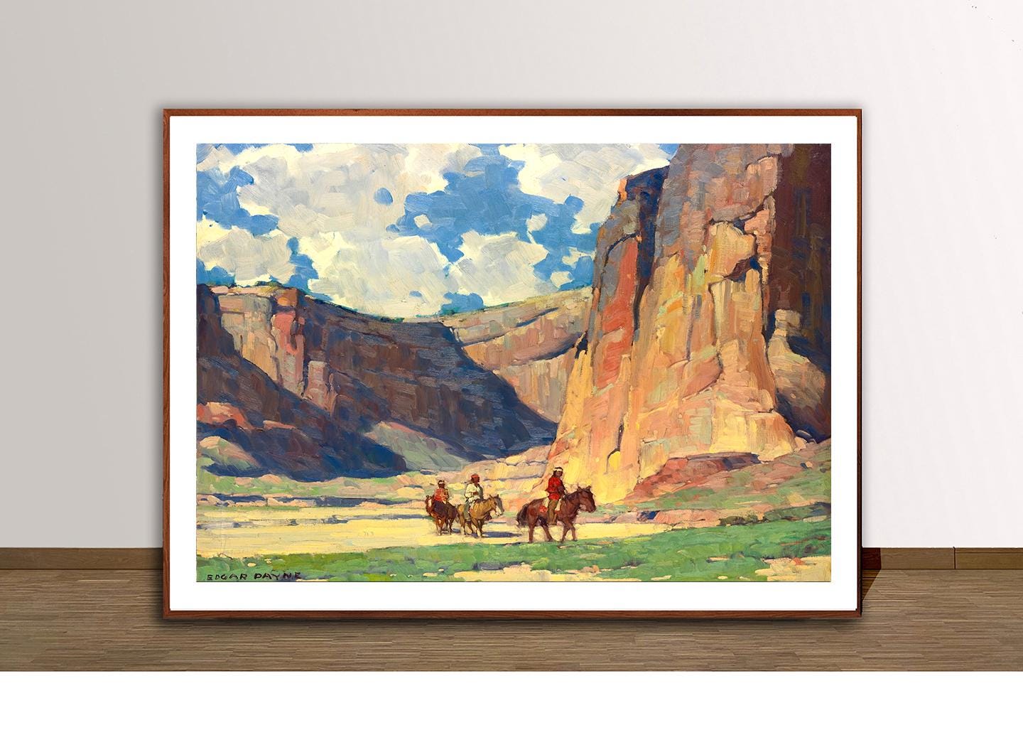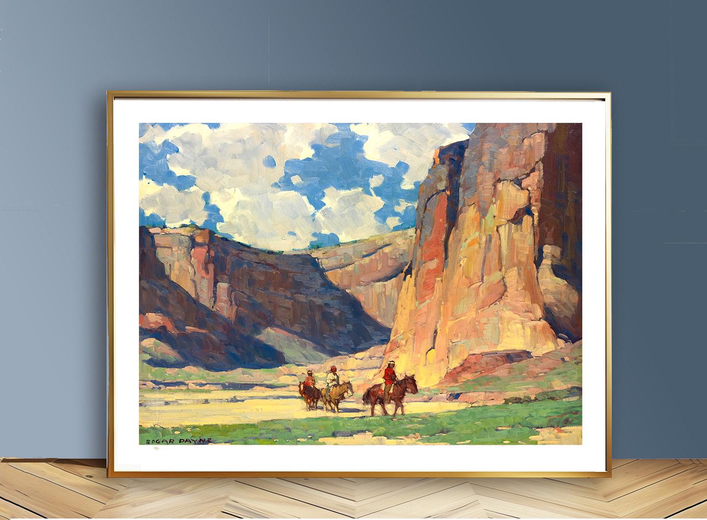Indians Riding Through the Canyon de Chelly by Edgar Alwin Payne Fine Art Print, Old American Poster, Wild West Artwork, Indians Wall Décor