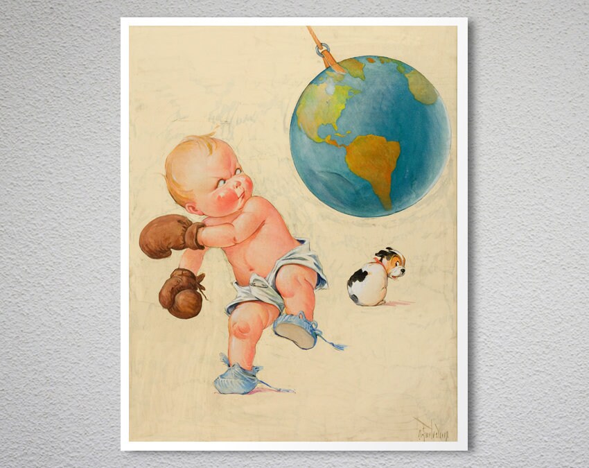 Boxing the World by Charles Twelvetrees Nursery Art Print - Poster Paper or Canvas Print / Gift Idea / Wall Decor