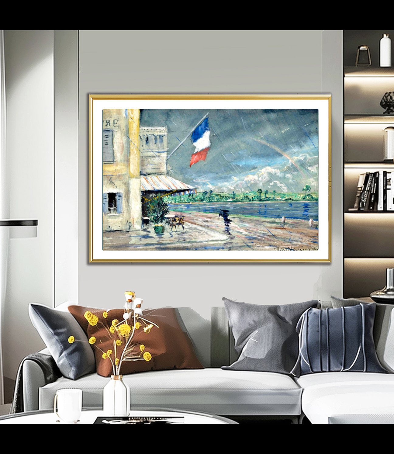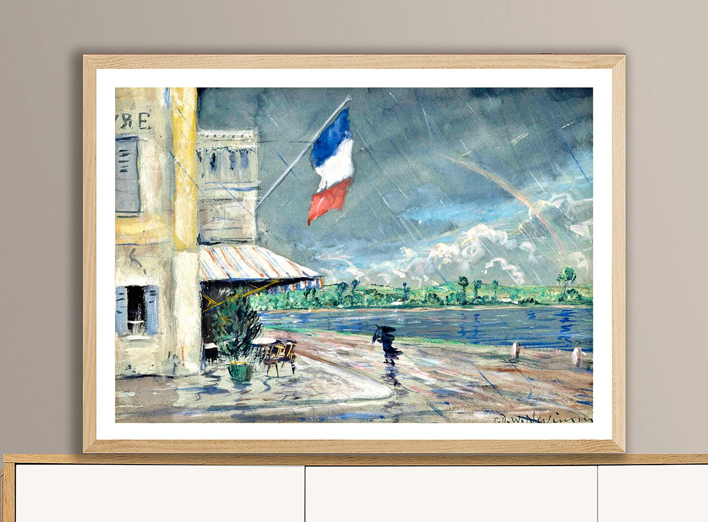 French Cafe in the Rain Fine Art Print: Vintage Cityscape Poster