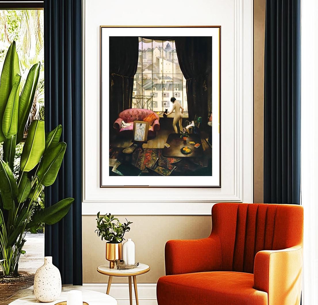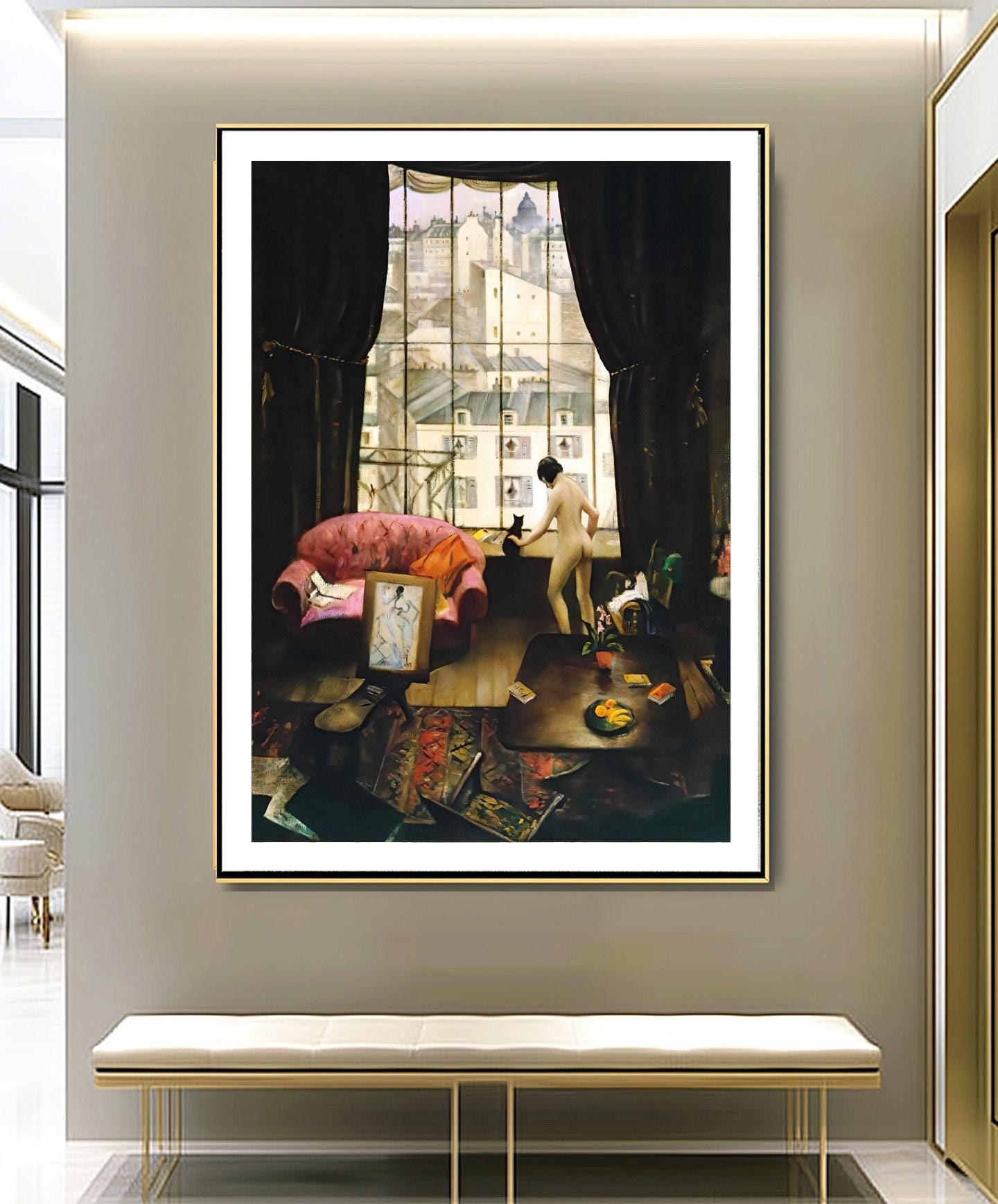 Christopher R.W. Nevinson’s A Studio in Montparnasse captures the artistic energy and modernist spirit of early 20th-century Paris. Montparnasse was a hub for avant-garde artists, writers, and intellectuals, and Nevinson, with naked model brings a dynamic perspective to this interior scene.
