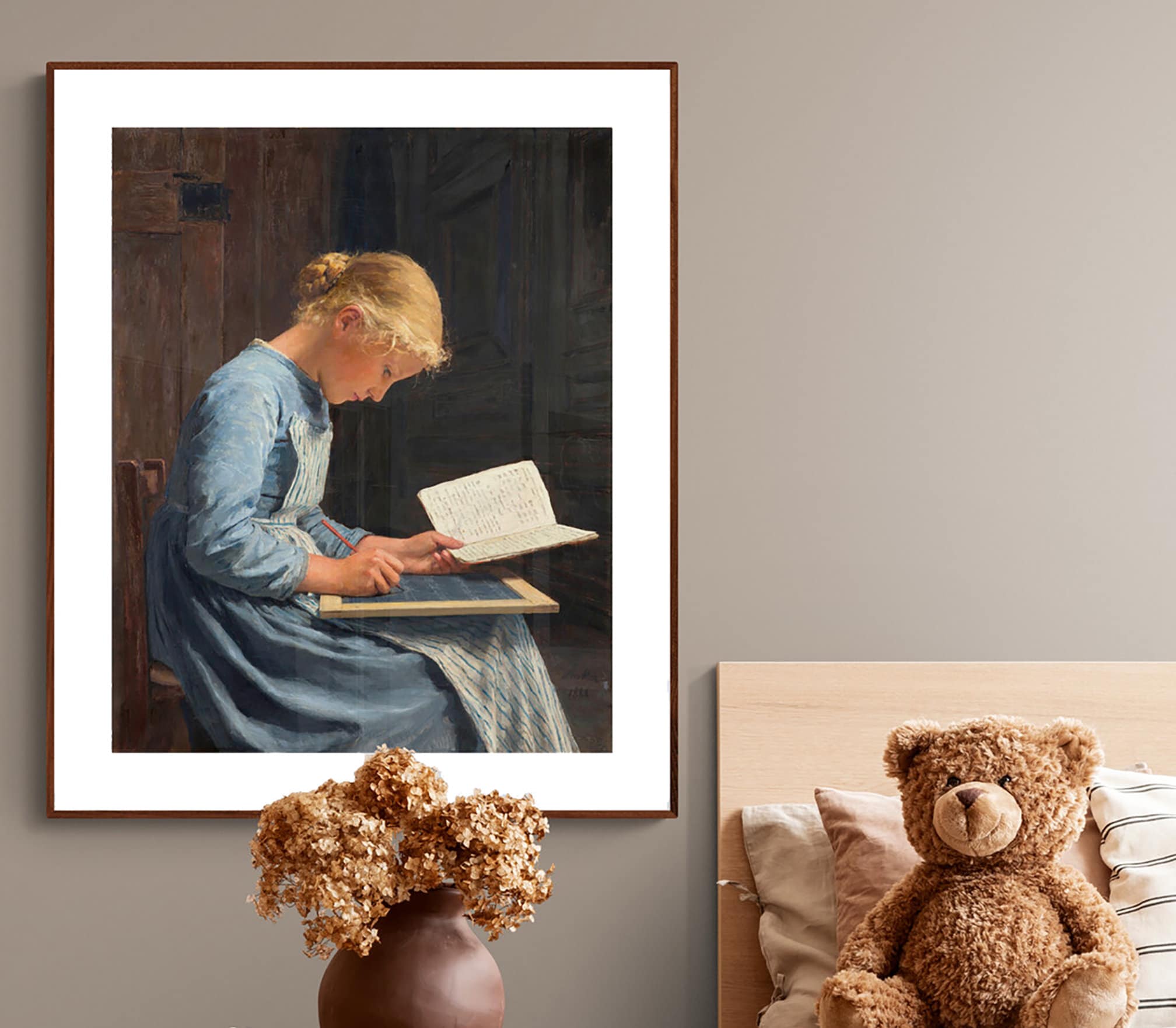 Printed on high quality paper, cotton canvas or adhesive sticker paper. A high quality reproduction of painting by Albert Anker. Professional packaging for safe shipping. Natural white border will be added to the image for mounting and framing.