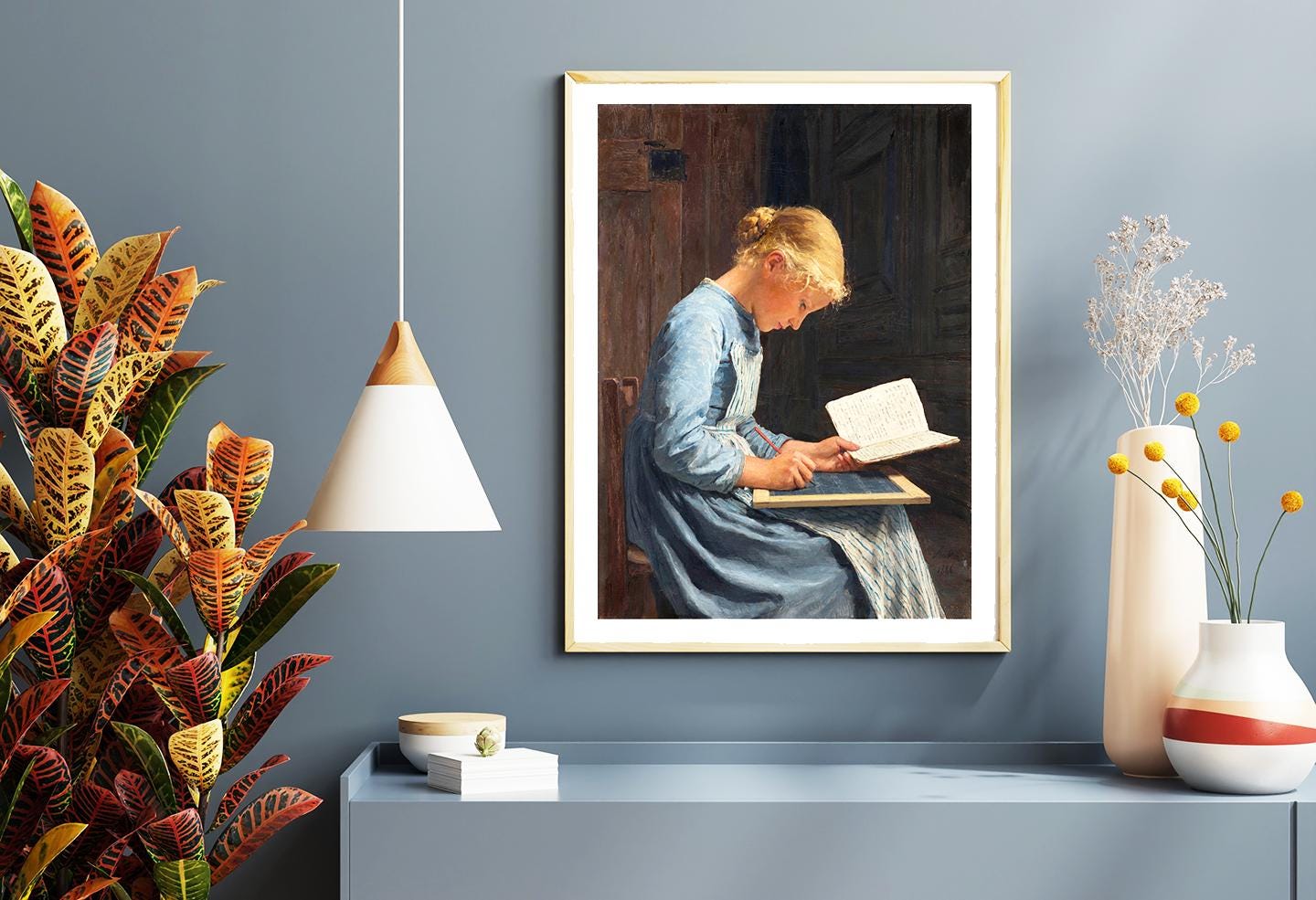 Albert Anker Fine Art Print: Girl Reading, Figurative Wall Decor